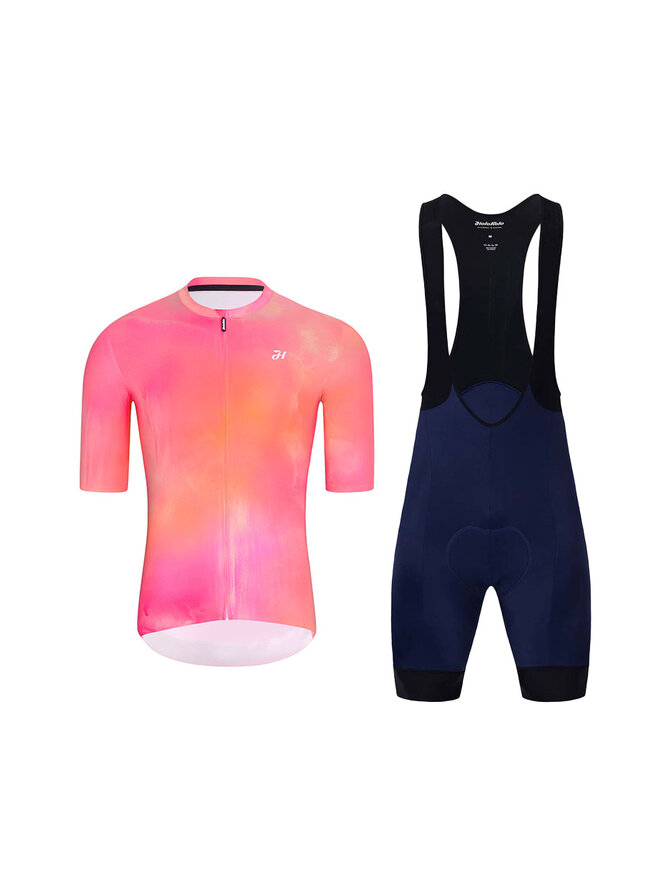 Cyklistický krátky dres a krátke nohavice - COSMA - modrá/čierna/oranžová/ružová