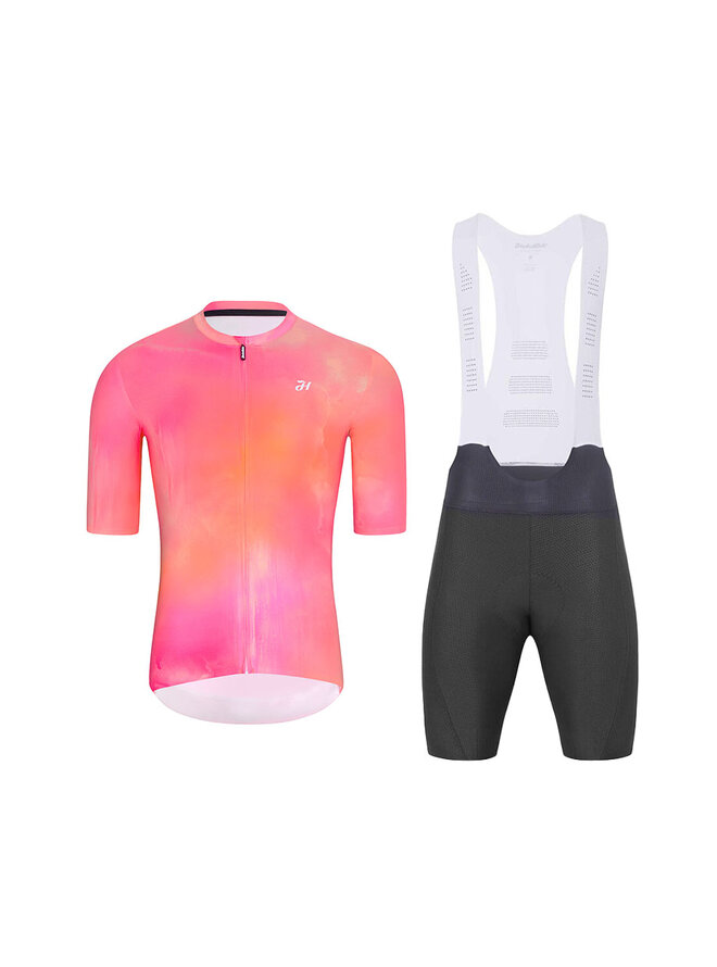 Cyklistický krátky dres a krátke nohavice - COSMA - antracitová/oranžová/ružová