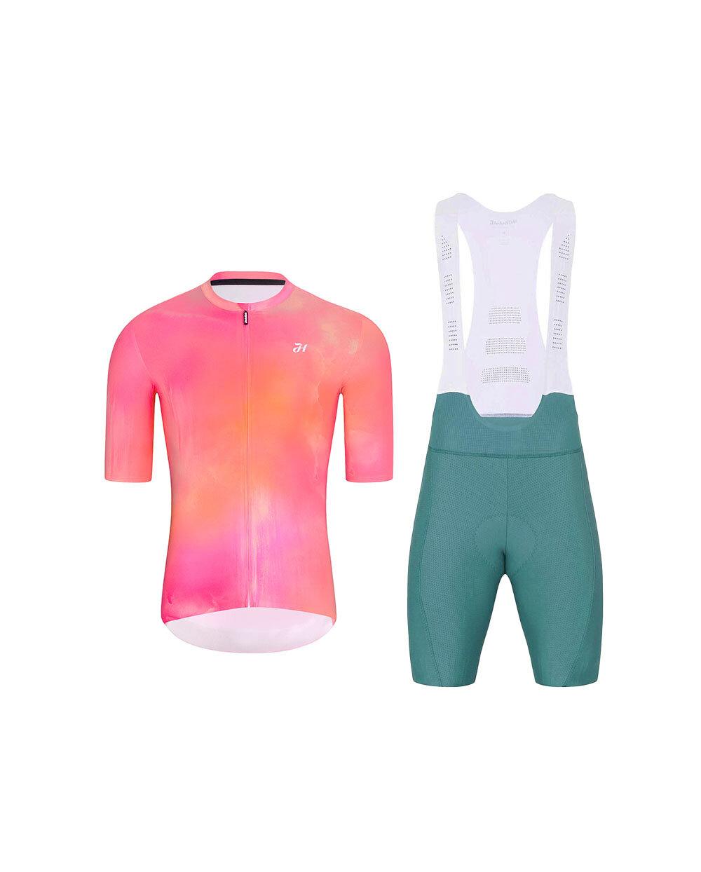 Cyklistický krátky dres a krátke nohavice - COSMA - modrá/oranžová/ružová
