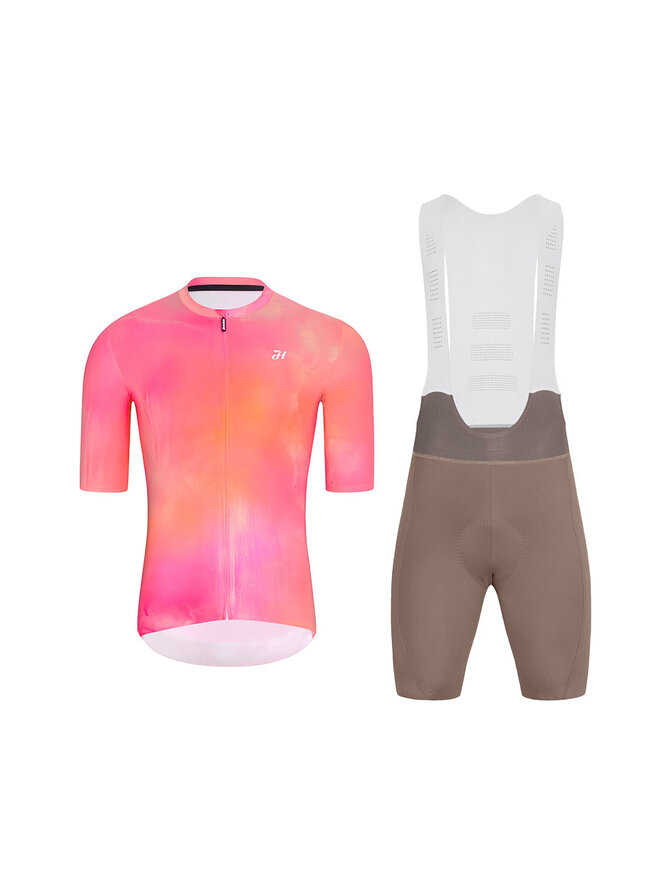Cyklistický krátky dres a krátke nohavice - COSMA - hnedá/oranžová/ružová