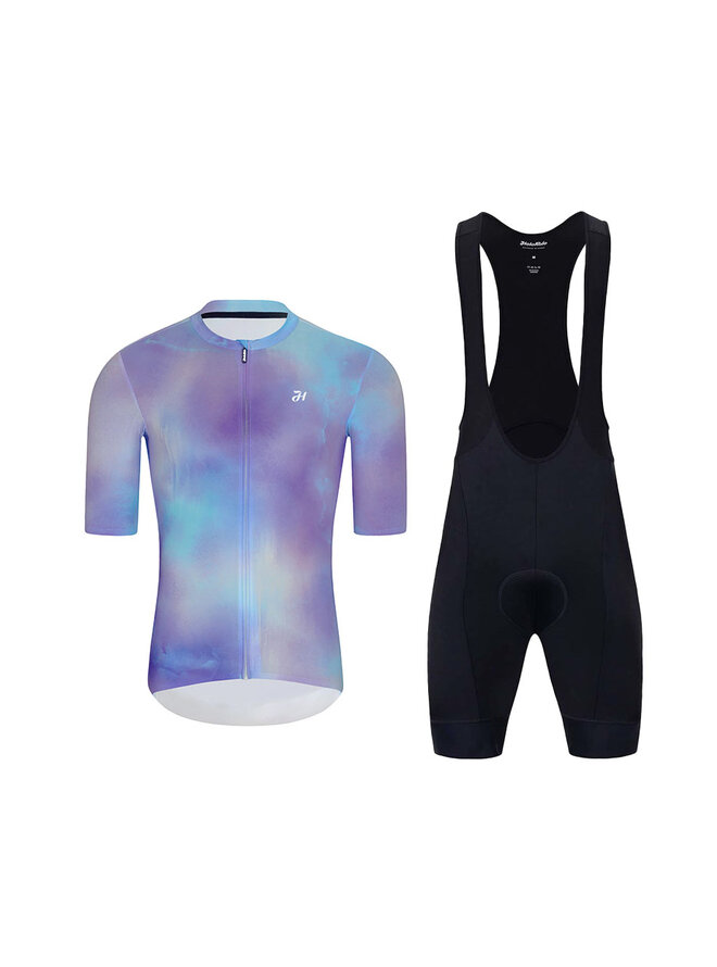 Cyklistický krátky dres a krátke nohavice - COSMA - čierna/svetlo modrá/fialová