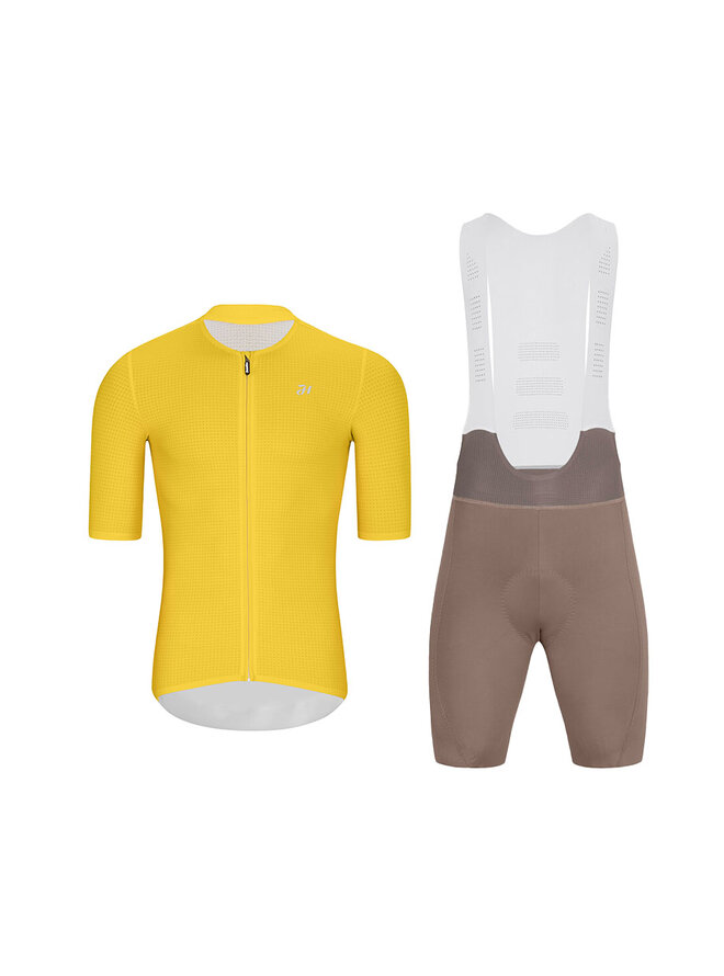 Cyklistický krátky dres a krátke nohavice - ELEVATE - hnedá/žltá
