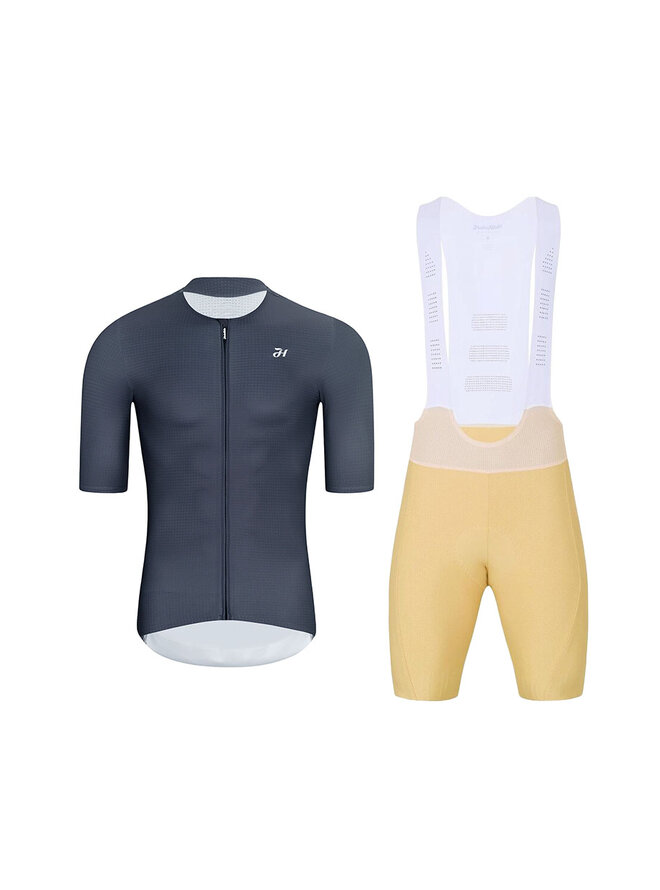 Cyklistický krátky dres a krátke nohavice - ELEVATE - béžová/fialová/antracitová
