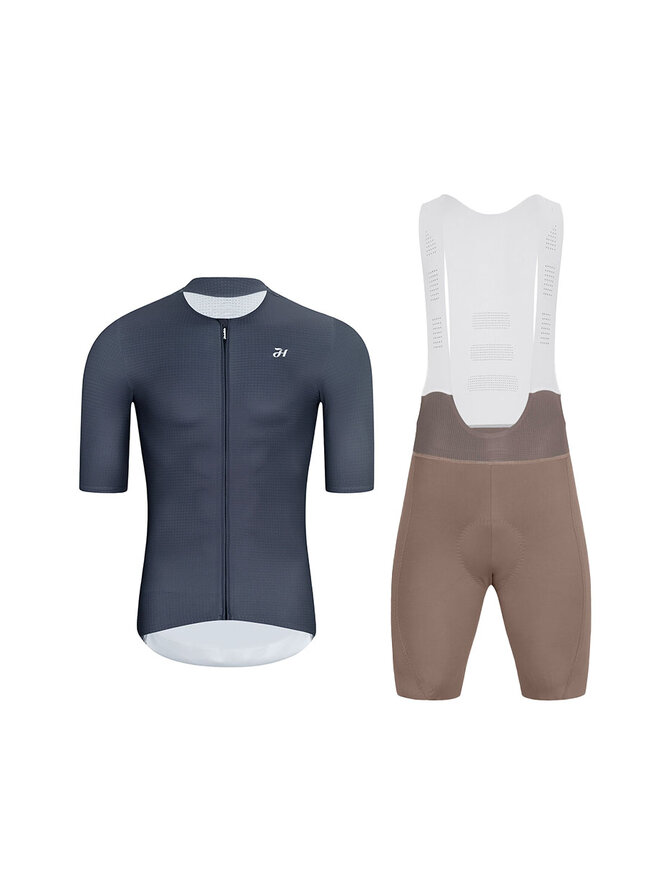 Cyklistický krátky dres a krátke nohavice - ELEVATE - hnedá/fialová/antracitová
