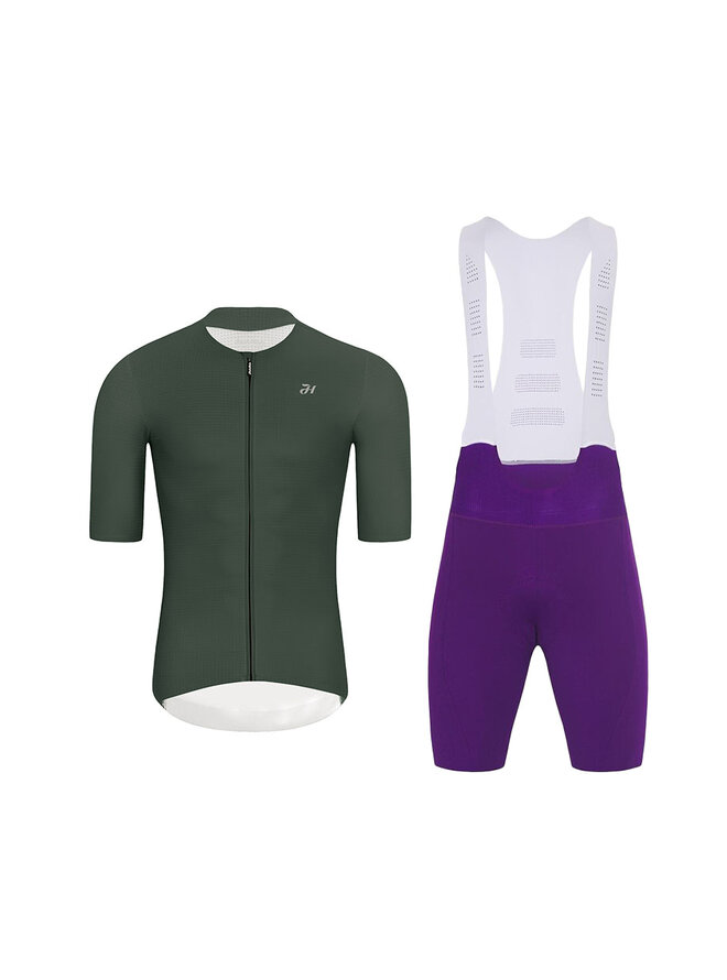 Cyklistický krátky dres a krátke nohavice - ELEVATE - fialová/zelená