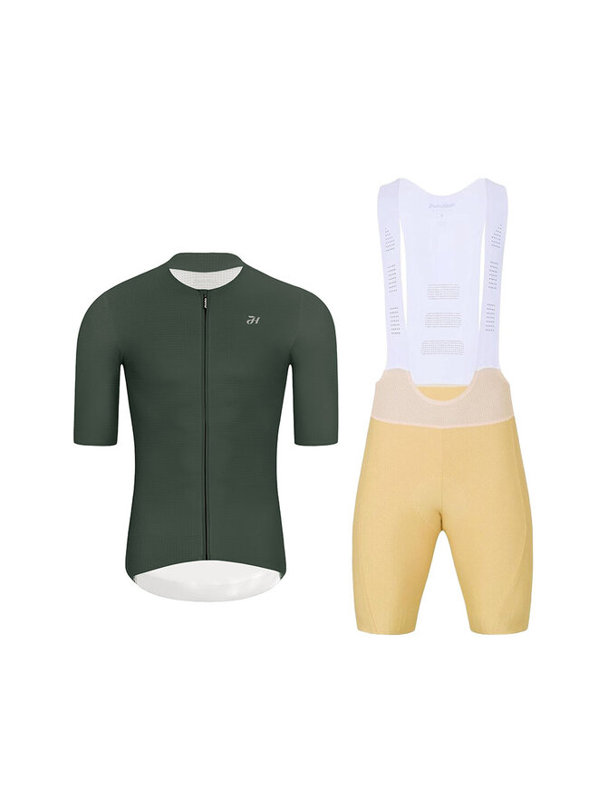 Cyklistický krátky dres a krátke nohavice - ELEVATE - béžová/zelená