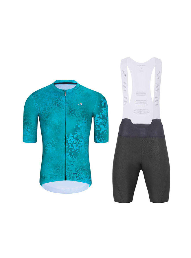 Cyklistický krátky dres a krátke nohavice - RUSTLE - antracitová/tyrkysová