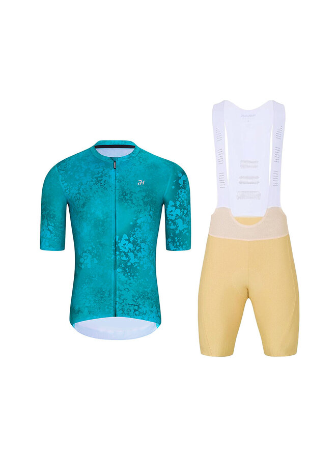 Cyklistický krátky dres a krátke nohavice - RUSTLE - béžová/tyrkysová