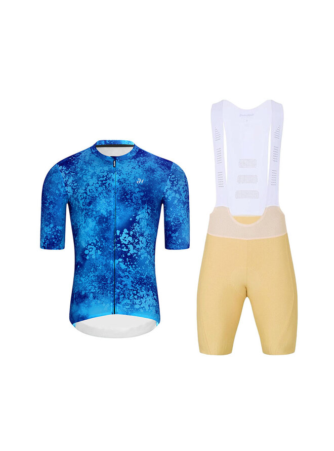 Cyklistický krátky dres a krátke nohavice - RUSTLE - béžová/modrá