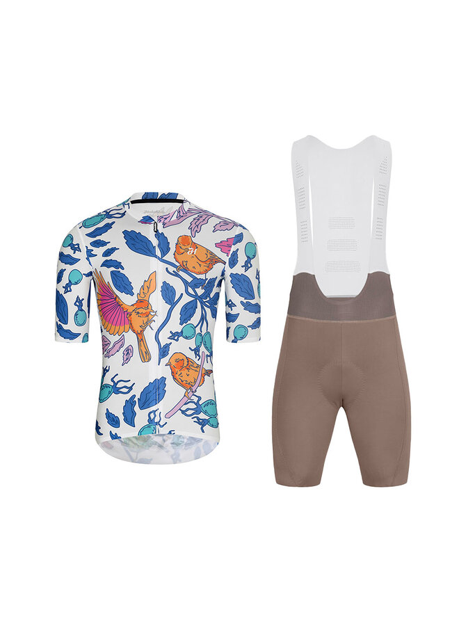 Cyklistický krátky dres a krátke nohavice - SPARROVER - hnedá/biela/viacfarebná