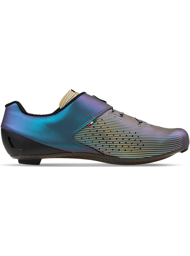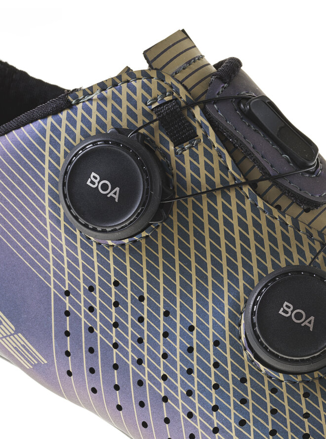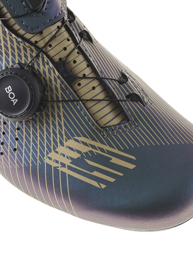 Tretra Carbon G.Fuga bola navrhnutá tak, aby zabezpečila perfektnú polohu chodidla vo vnútri tretry vďaka technológii TSS „Tarsal Support System“, čím sa dosahuje plynulé šliapanie bez straty energie. Dual Fitting Closure System: dve kolieska BOA slúžia na utiahnutie obuvi. Patentovaný upínací systém BOA L6 DIAL Z sa skladá z mikroregulačného navíjacieho kolieska a nerezového lanka. Kombinácia týchto prvkov umožňuje rovnomerné a rýchle upnutie bez akéhokoľvek nepríjemného tlaku. Navyše, absencia suchého zipsu umožňuje lepšiu cirkuláciu vzduchu v prednej časti chodidla. BOA poskytuje záruku na navíjacie koliesko a lanká po celú dobu životnosti tretier. Pre lepšie odvetranie vnútri tretry je jazyk, ktorý prekrýva priehlavok chodidla, perforovaný. Na vnútornej strane sa nachádza mäkké polstrovanie pre vyšší komfort. Priedušná a špeciálne anatomicky tvarovaná vložka aktívne stimuluje chodidlo pri každom zábere. Antibakteriálna a hypoalergénna vložka vďaka mikro otvorom zabezpečuje vynikajúcu priedušnosť chodidla. Vložka je vymeniteľná. Päta v novom prevedení s vonkajšími otvormi na odvetrávanie a anatomicky tvarovanou plastovou výstužou na zachovanie stáleho tvaru. Zabraňuje zhrňovaniu ponožky a chráni pred zápalom Achilovej šľachy.Detaily