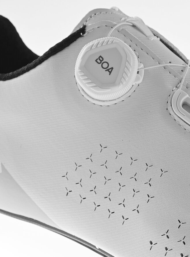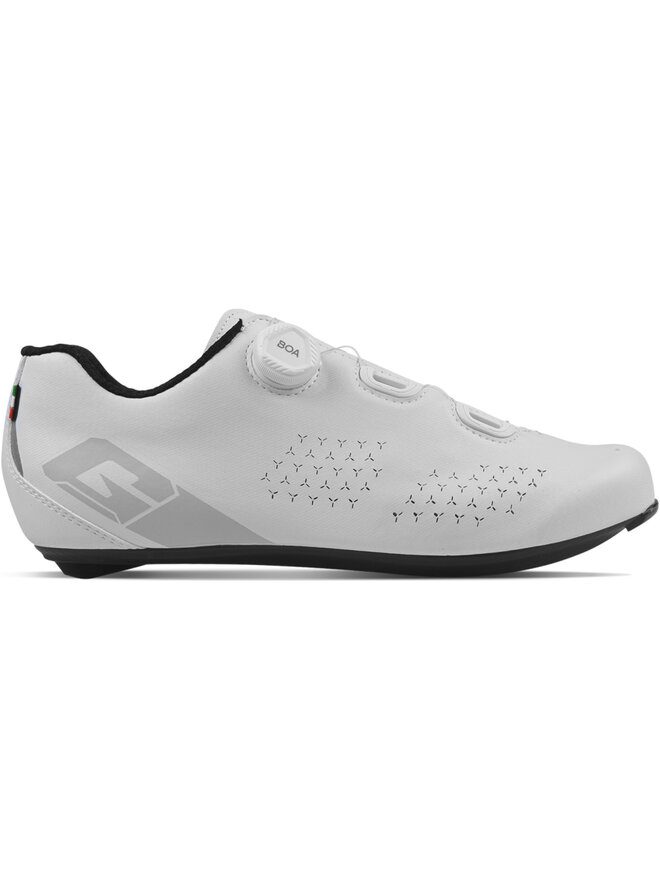 G.SPRINT+ je cestná cyklistická obuv, ktorá plynulo spája kľúčové prvky z našej profesionálnej rady, teraz optimalizované pre každého cyklistu. Mikrovláknový materiál je perforovaný, aby optimalizoval priedušnosť a zlepšil ventiláciu vzduchu, vďaka čomu udržiava chodidlá v chlade a suchu počas celej jazdy. Vnútro obuvi je doplnené sieťovinou, ktorá poskytuje trvalú oporu chodidla a zvyšuje jeho stabilitu. Systém zapínania vybavený mikronastaviteľným systémom BOA L6 zabezpečuje rovnomerné a bezpečné zapnutie bez akýchkoľvek tlakových bodov. Technológia COMFORT FIT TONGUE obsahuje high-tech tlmiacu vrstvu pre vyšší komfort a lepšiu priedušnosť. Integrovaná protišmyková pätová časť zvyšuje stabilitu chodidla a jeho kontrolu pre lepší zážitok z jazdy. EPS TRANSPIRANT INSOLE sa vyznačuje anatomickou podporou, ktorá zvyšuje pohodlie a efektivitu šliapania.Detaily