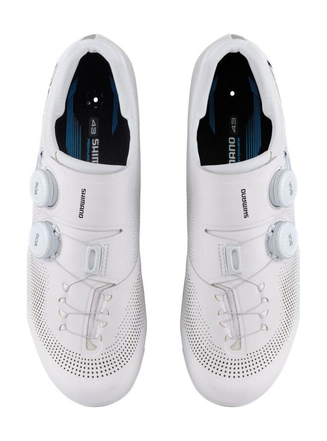 Pretekárske cestné tretry s S-PHYRE DNA. Vysoko tuhá, dutá karbónová medzipodrážka účinne odvetráva nohu a odvádza vodu. Krížový vzor šnurovania s nízkym profilom elegantne zaisťuje prednú časť chodidla. Systém BOA® Fit s párom koliesok L6 typu Z podporuje presné nastavenie upnutia nohy. Priedušný zvršok zo syntetickej kože so zvýšenou ventiláciou. Integrovaná bezšvová medzipodrážka a zvršok nastavujú novú úroveň prispôsobenia, stability a ľahkého výkonu. Surround wrapping zvršok redukuje presahy a noha dokonale sedí v tretre. SHIMANO DYNALAST podporuje hladšie šliapanie a efektívnejší prenos sily. SPD-SL. Hmotnosť od 488g (č.42). Odporúčame odmerať chodidlo a objednať veľkosť podľa veľkostnej tabuľky - zväčša je potrebné objednať o číslo väčšiu veľkosť než štandardne nosíte. Tieto tretry sú v prevedení so širším kopytom.Detaily