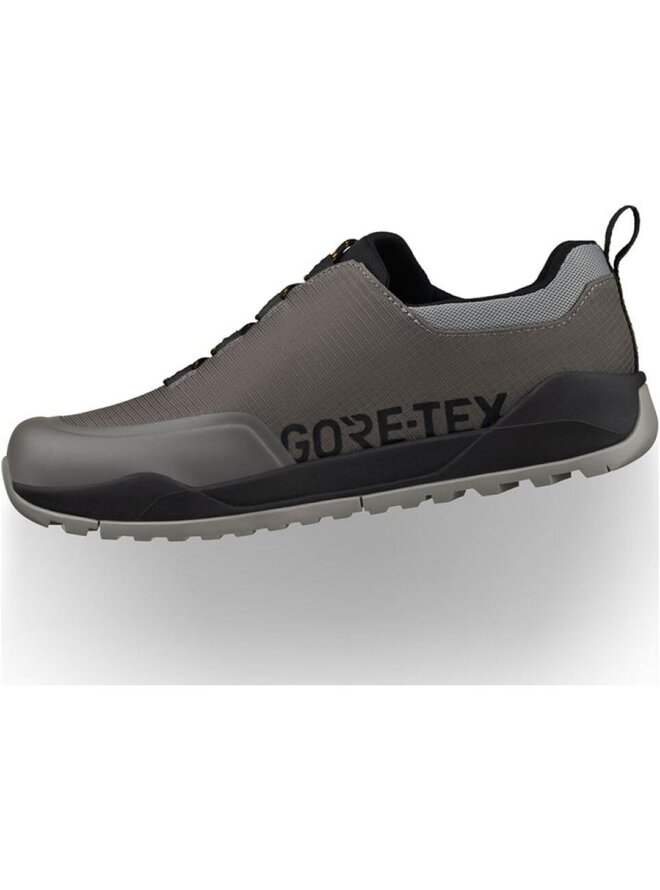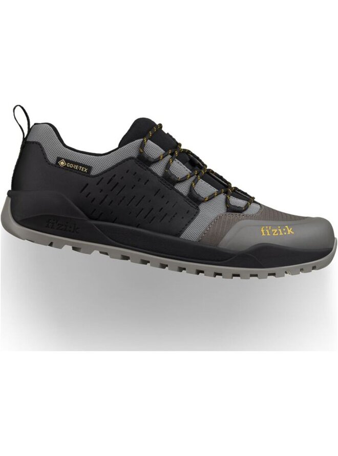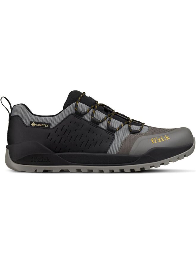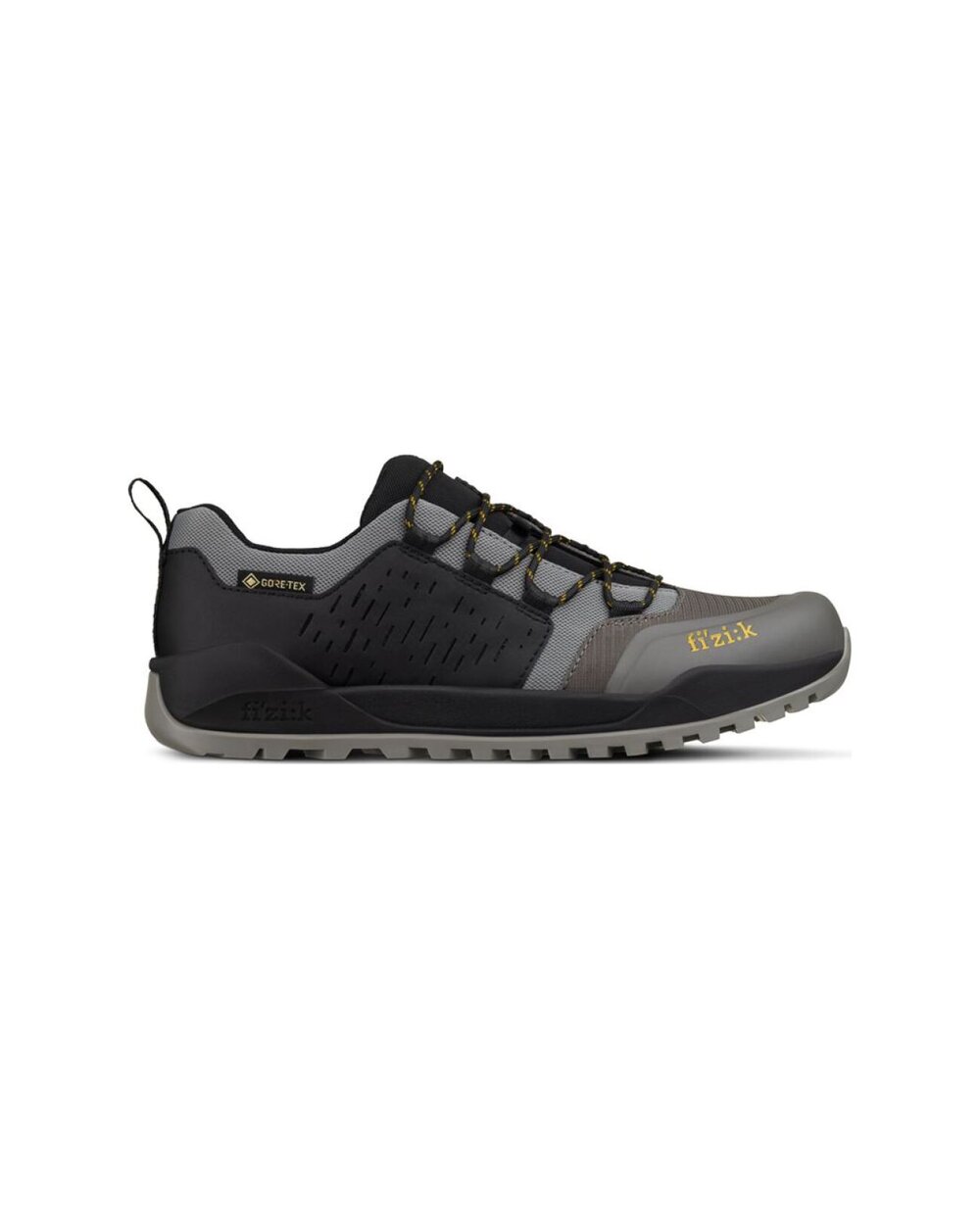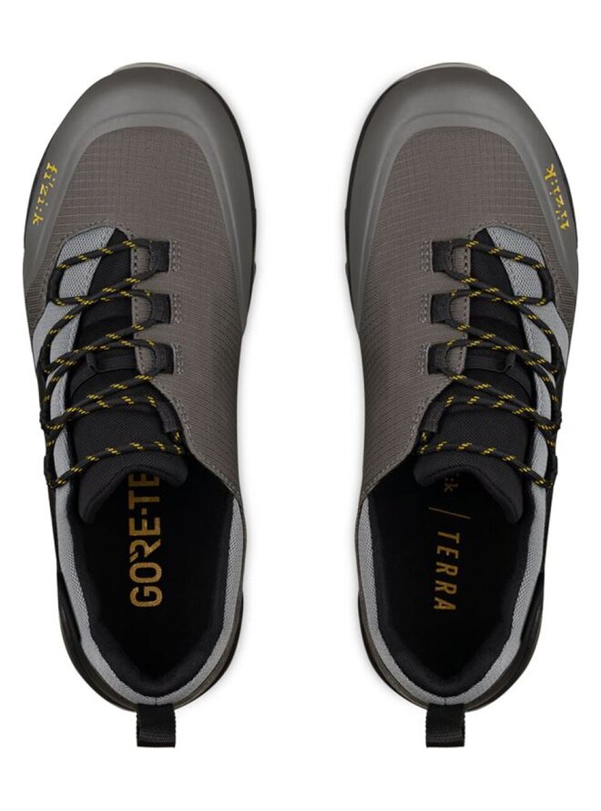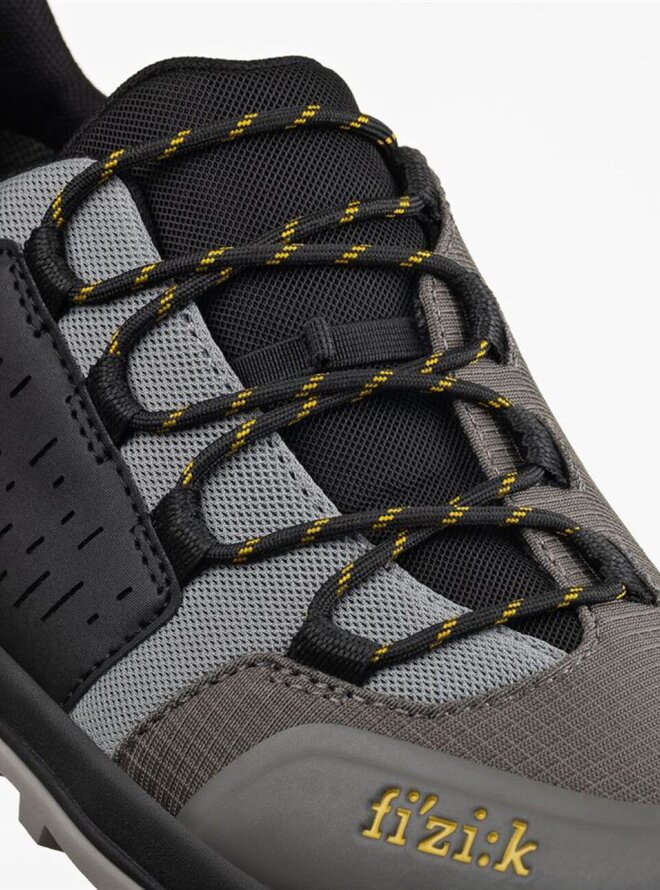 Goretex verzia obľúbených univerzálnych tenisiek Fizik do náročnejších podmienok. GORE-TEX membrána je vodeodolná a priedušná zároveň s odolnou tkaninou na povrchu. Terra Ergolace X2 sú topánky na horské bicykle, ktoré zvládnu ako technickú jazdu na trailoch, tak aj kombináciu bicyklovania a chôdze počas nedeľného výletu s rodinou. Je to robustná, funkčná v každom smere, topánka, ktorá sa vracia ku koreňom cyklistiky – umožňuje dobýjať, objavovať, baviť sa. Spolu s jazdcom zvládne všetky typy terénu, do kopca aj z kopca, na bicykli aj mimo neho. Ripstop tkanina s vysokou pevnosťou chráni tenisku pred roztrhnutím a roztrhnutím a chodidlo pred prípadným zranením. Podrážka Vibram spolu s výrazným vzorom zaisťuje skvelú priľnavosť na bicykli alebo aj pri chôdzi, napríklad keď musíte zísť dolu terénnymi schodmi alebo zoskočiť z bicykla na návštevu zrúcaniny hradu. Šnurovanie na vonkajšej strane tenisky spolu s pútkom na šnúrku zvyšuje bezpečnosť jazdy a zaisťuje, že šnúrky vám pri jazde neprekážajú. Odvetraný jazyk zaisťuje dostatočné vetranie tenisky. Materiál vystužený Microtexom, odolná tkanina Ripstop Podrážka X2 Vibram systém zapínania na šnúrku, jazyk s pútkom na šnúrku vložiť fi'zi:k hmotnosť 329 g (42,5)Detaily