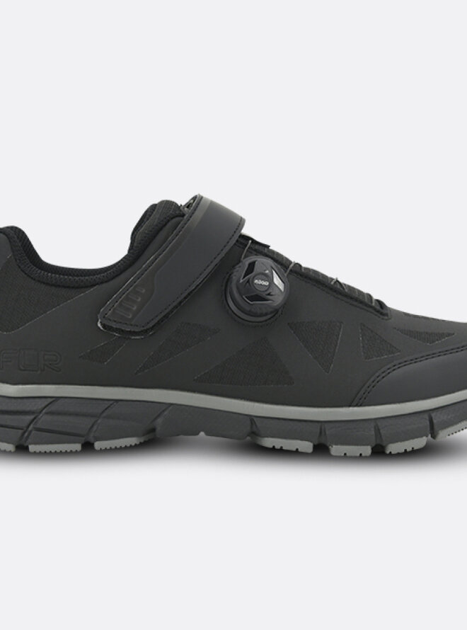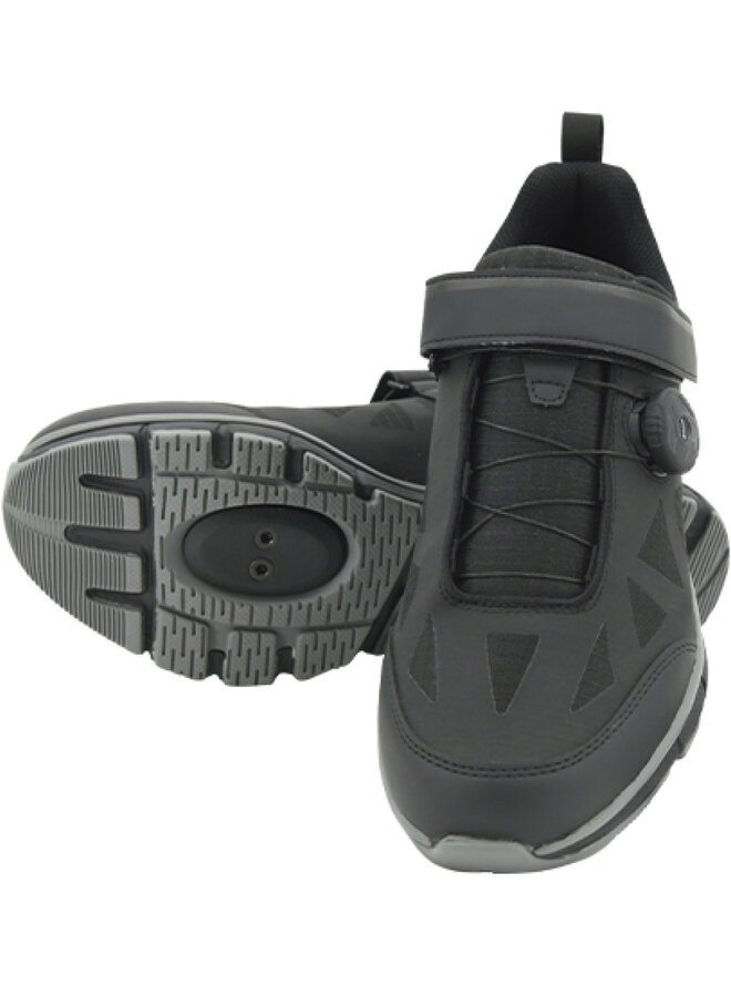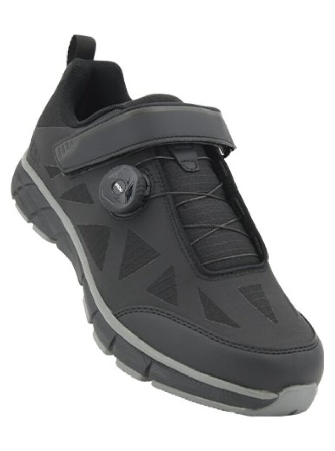 Tieto topánky majú vysokokvalitný syntetický zvršok, sieťované okienka pre priedušnosť a ventiláciu a extra ochranu vďaka zosilnenej špičke. Systém šnurovania využíva jeden číselník a veľký pásik na suchý zips pre bezpečné a presné uchytenie v každom bode nohy. Podošva Active ponúka perfektnú rovnováhu hmotnosti a stability. Vystužená nylónová vnútorná doska zvyšuje efektivitu šliapania, zatiaľ čo medzipodošva EVA a gumený behúň zvyšujú pohodlie pri chôdzi mimo sedla. Vďaka skrytému dizajnu zarážky a gumovým nášľapom pre pridanie trakcie a priľnavosti potrebnej pri prechode z bicykla.