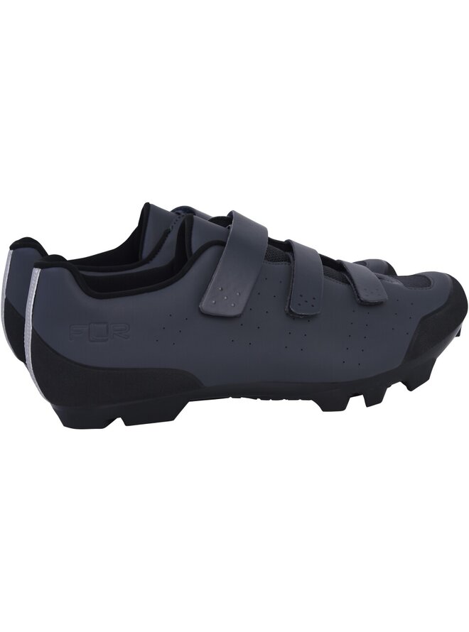MTB tretry FLR FX-1 sú cenovo dostupné cyklistické topánky určené pre jazdu na MTB a gravel bicykloch, ktoré ponúkajú vysoký výkon a pohodlie. Tretry sú vyrobené zo syntetického materiálu so šiestimi sieťovanými panelmi, ktoré zaisťujú vynikajúcu ventiláciu a udržujú nohy v komforte. Upevnenie je zaistené tromi nízkoprofilovými suchými zipsami, ktoré umožňujú presné a bezpečné nastavenie počas jazdy.