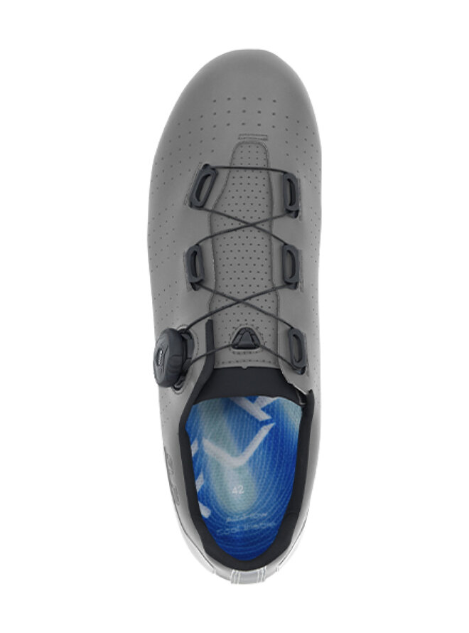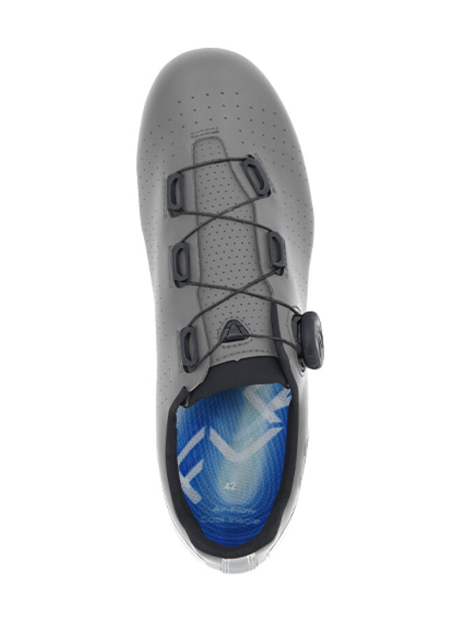 Zvršok je vyrobený z odolného syntetického materiálu s perforáciami pre lepšie odvetranie. Hlavným benefitom je precízny a rýchly utiahovací systém ATOP s otočným kolieskom, ktorý umožňuje rovnomerné stiahnutie bez otlakov – pre maximálne pohodlie počas jazdy. Podrážka je kompatibilná so systémom SPD a ponúka optimálnu tuhosť pre efektívny prenos energie.