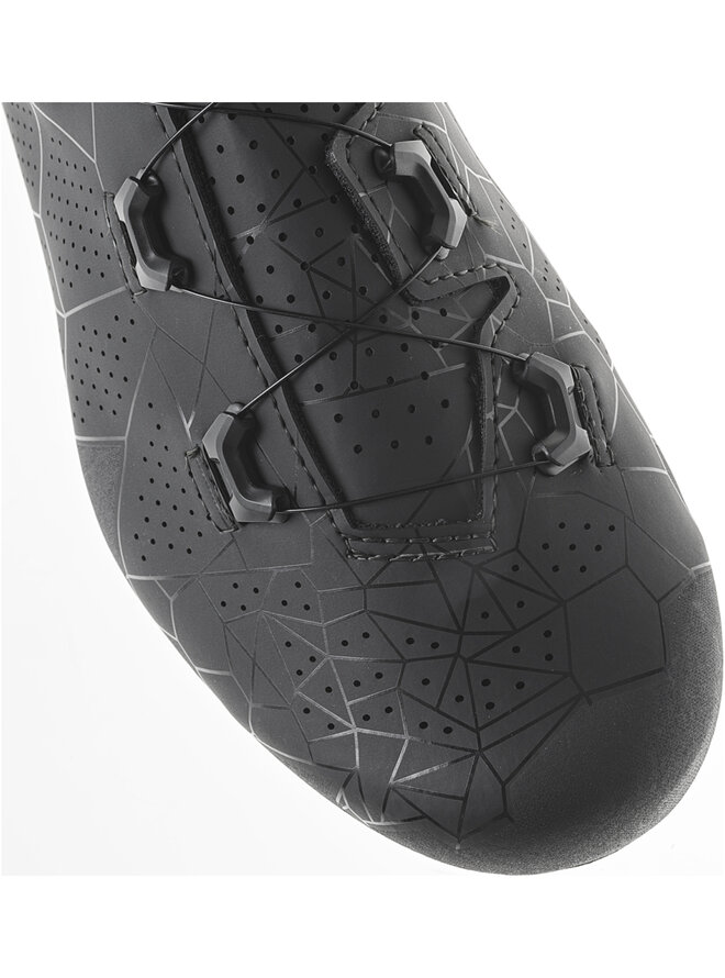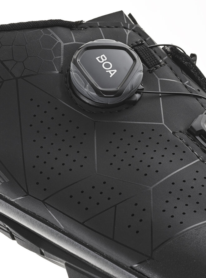 EDGE je MTB obuv pre tých, ktorí chcú maximalizovať každý kilometer na štrkových cestách, vo výjazdoch aj všade medzi tým. Tieto topánky, navrhnuté tak, aby hladko spájali výkon a pohodlie, sú ideálne pre cyklistov hľadajúcich funkčný a spoľahlivý produkt. Mikrovláknový zvršok je strategicky perforovaný otvormi rôznych veľkostí, premyslene rozmiestnenými po celej obuvi, aby optimalizoval priedušnosť a ventiláciu vzduchu a zároveň udržiaval chodidlá v chlade a suchu počas celej jazdy. Vnútorná časť obuvi je doplnená sieťovinou, ktorá poskytuje trvalú oporu chodidla a zvyšuje jeho stabilitu. Systém zapínania vybavený mikronastaviteľným kotúčom BOA L6 DIAL C a 5 vodítkami šnúrok zabezpečuje rovnomerné a bezpečné zapnutie bez akýchkoľvek tlakových bodov. Zaoblená časť kotúča BOA je vyrobená z gumy, ktorá poskytuje vynikajúcu priľnavosť. Comfort Fit Tongue obsahuje high-tech tlmiacu vrstvu pre vyšší komfort a lepšiu priedušnosť. Integrovaná protišmyková pätová časť zvyšuje stabilitu chodidla a kontrolu nad obuvou pre lepší zážitok z jazdy. Anatomicky tvarovaná vložka EPS Transpirant Insole poskytuje podporu chodidla, pohodlie a efektívny prenos energie pri šliapaní.Detaily