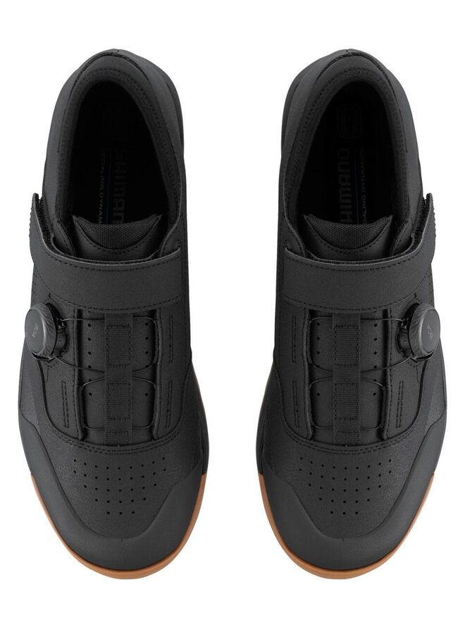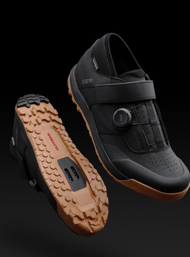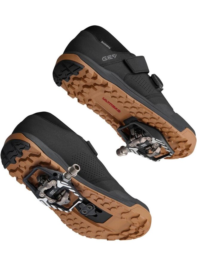 Prémiové pretekárske gravity tretry pre náročné zjazdy a boj o každú sekundu. Model GE900HS (Hot Seat) je vyrobený pre úplnú kontrolu jazdca a maximálnu istotu v technickom teréne a je tou správnou voľbou pre profesionálnych enduro a downhillových pretekárov – alebo pre každého, kto chce posúvať hranice na traile. Medzipodrážka Force Control s extrémnou tuhosťou pre nekompromisný výkon pri zjazde. Prepracovaná konštrukcia nylonovej medzipodrážky vystuženej karbónom je o 25 % tvrdšia ako medzipodrážka modelu GE900, čím poskytuje tuhšiu a stabilnejšiu platformu pre šliapanie. Systém BOA® Fit s kolieskom Li2F vrátane krytu, ktorý zabraňuje náhodnému uvoľneniu. Gumená zmes SHIMANO ULTREAD GE optimalizovaná na Enduro a priľnavý dezén zaisťujú spoľahlivé šliapanie na bicykli aj mimo neho. Optimalizovaná neoprénová manžeta obopína členok a zabraňuje prenikaniu kameňov a nečistôt. Systém BOA® Fit s plochým šnurovaním a plochými švami, ktoré zabraňujú zamotávaniu na trati. Tretry sú kompatibilné so zarážkami SPD. Váha páru tretier je 872g vo veľkosti 43. Odporúčame odmerať chodidlo a objednať veľkosť podľa veľkostnej tabuľky - zväčša je potrebné objednať o číslo väčšiu veľkosť než štandardne nosíte.Detaily