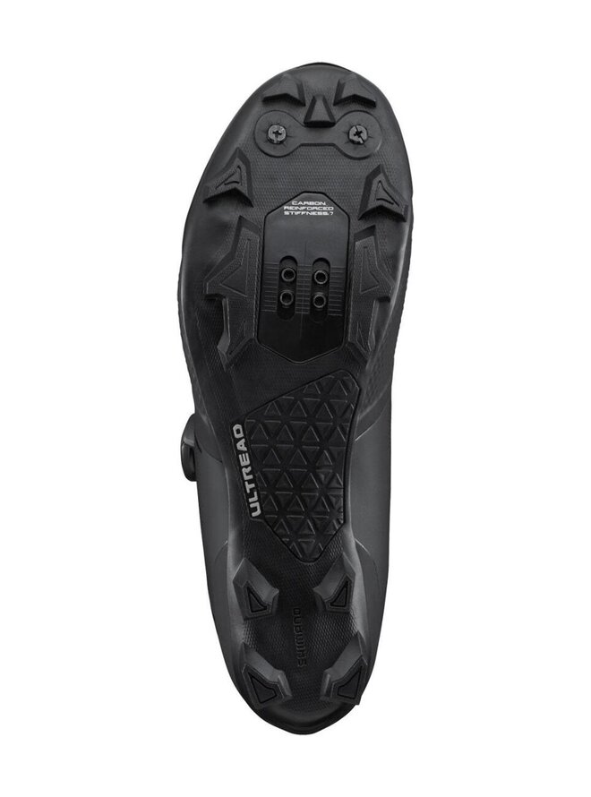 Robustné XC topánky pre začínajúcich pretekárov, ktorí si cenia vysoký výkon a štýl. Systém BOA® s pogumovaným kolieskom L6C a a ochranným krytom umožňuje jednoduché nastavenie za chodu. Medzipodrážka vyrobená z čiastočne recyklovaného nylonu s výstužou z karbónových vlákien. Ľahká gumená podrážka SHIMANO ULTREAD XC poskytuje vynikajúcu priľnavosť pri pretekoch. Špička a medzipodrážka vyrobené z 19 % (hmotnostne) recyklovaného materiálu. Elegantný perforovaný zvršok zo syntetickej kože s novým vzorom zapínania. Nastaviteľné úchyty na hroty - pridajte hroty na špičky pre extra priľnavosť na klzkých chodníkoch. Kompatibilné so zarážkami SPD. Hmotnosť: od 620g (č. 43). Odporúčame odmerať chodidlo a objednať veľkosť podľa veľkostnej tabuľky - zväčša je potrebné objednať o číslo väčšiu veľkosť než štandardne nosíte. Tretry sú dostupné aj v prevedení so širším kopytom - veľkosť je označená písmenom E.Detaily