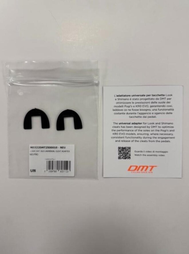Univerzálna podložka pod prednú časť cestných zarážok Look/Shimano navrhnutá DMT, pre optimalizáciu tvaru podrážky, aby v nutných prípadoch bolo možné zaručiť plnú funkcionalitu pri nacvaknutí i vycvaknutí zarážky z pedála.Ideálna hlavne pre malé veľkosti tretier, kde je ohyb podrážky o niečo väčší ako je zakrivenie dosadacej plochy zarážky na podrážku. Detaily