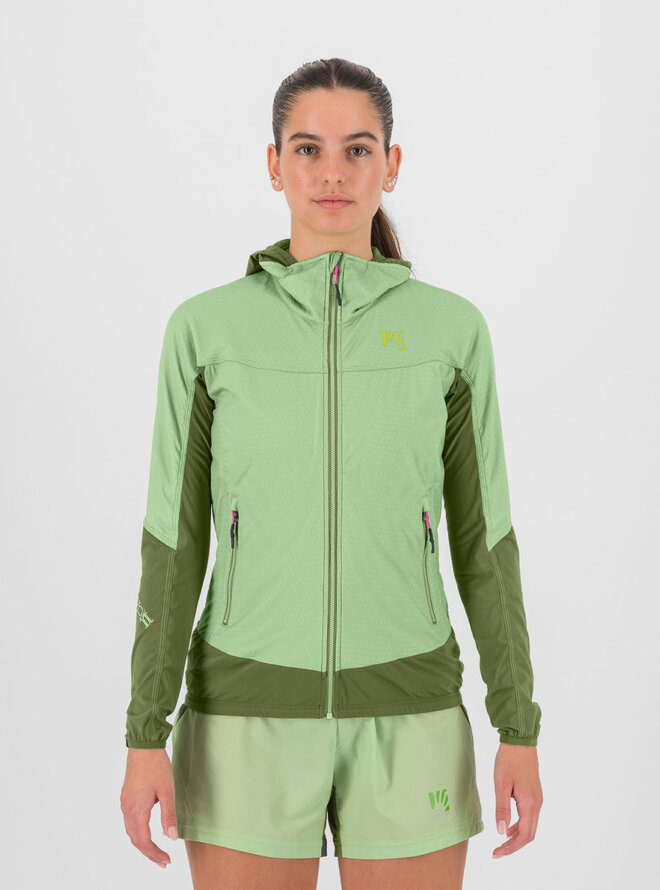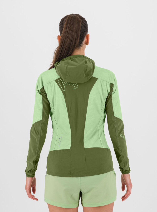 Letná, technická bunda Karpos Lavaredo je určená na beh a ostatné aeróbne aktivity v chladnom počasí. Vďaka hybridnej konštrukcii poskytuje predná strana ochranu pred vetrom, údržbu tepla pričom priedušné boky a zadná časť efektívne odvádzajú pot a zabraňujú prehrievaniu. Taktiež sa dá ľahko zbaliť a odložiť do batohu.