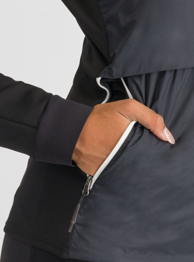 - Predná časť a rukávy majú podšívku so štruktúrovanou izoláciou, ktorá výborne udržiava telesné teplo a poskytuje dodatočnú ochranu pred chladom, pričom bunda zostáva ľahká a flexibilná.