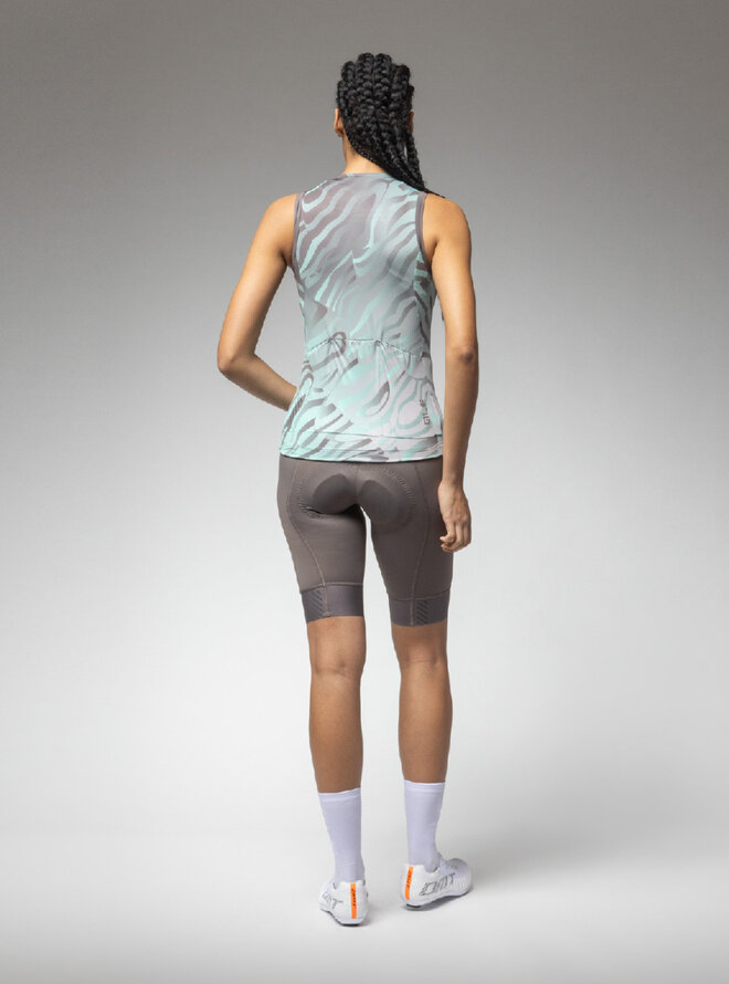 Dres PRAGMA SURFACE PR-E je jednoduchý a premyslený dres s dámskym bezšvovým strihovým prevedením bez rukávov. Jemný a priedušný materiál efektívne odvádza vlhkosť a reflexné prvky na prednej časti a zadných vreckách zaisťujú viditeľnosť aj za zlého svetla. Ak je u vás ekológia na prvom mieste, budete mať veľkú radosť z jazdy v tomto drese, na výrobu ktorého boli použité recyklované materiály.