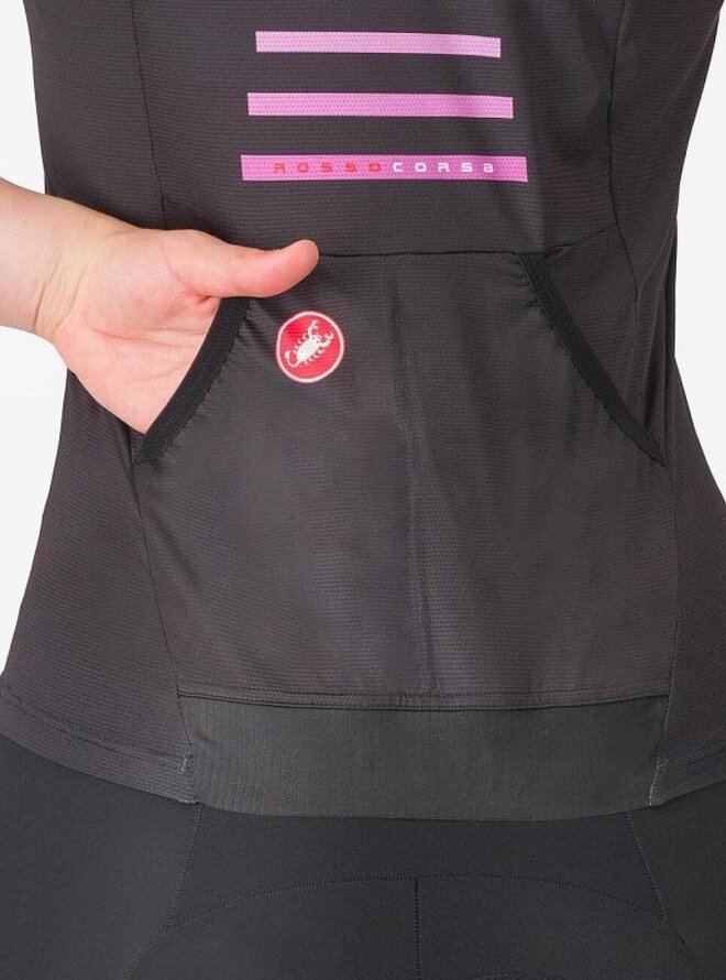Stále sú situácie, v ktorých dáva zmysel tradičný dres bez rukávov. Môže byť pohodlnejší pri behu a na pocit chladnejší s lepšou slobodou pohybu. Väčšina bežcov preteká v tielku práve z týchto dôvodov. Dres má dve dostatočne veľké vrecká na všetko, čo potrebujete pri pretekoch alebo tréningu. Má SnapLock zapínanie kompatibilné s Castelli krátkymi nohavicami, aby sa vám dres nevyhŕňal pri plávaní a aby ste mali na bicykli zakrytý spodný chrbát – potom dres odopnete pre väčšie pohodlie pri behu. Vďaka zipsu YKK je je vetranie jednoduchšie ako kedykoľvek predtým. Otvory na ruky sme obšili jemnou látkou, aby sme zabránili ošúchavaniu a zachovali aerodynamiku na bicykli.