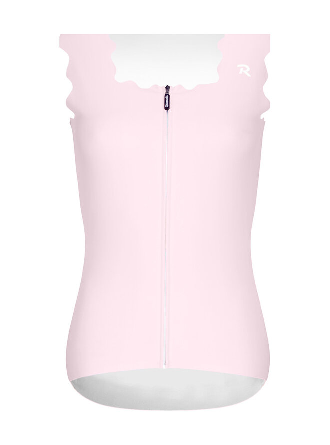 Cyklistický dres bez rukávov s dokonalým oblúkovým lemovaním, ktorý prináša full glam aj do cyklistických outfitov. Hrubšie vlnkové ramienka a štvorcový výstrih lichotia proporciám ramien aj každému typu dekoltu. Nechýba mu ani vybavenie, ktoré sa od kvalitného dresu očakáva. Celoplošný predný zips s ochranný prekrytím krku. Trojité vrecko s bezpečnostým vreckom na zips. Bezšvový lem s protišmykovou potlačou v zadnej časti dresu.