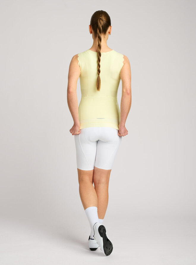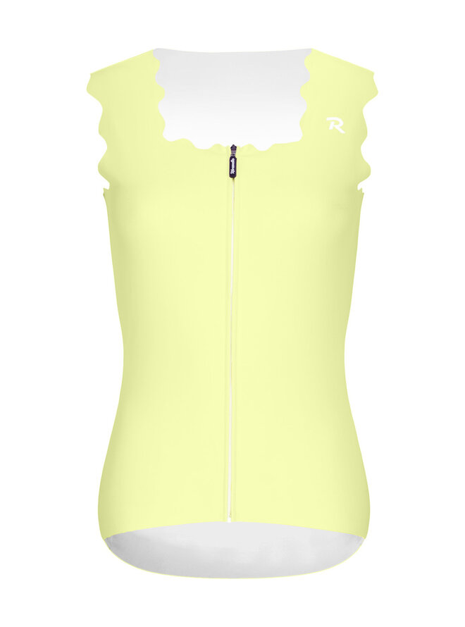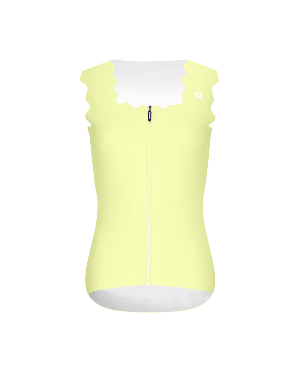 Cyklistický dres bez rukávov s dokonalým oblúkovým lemovaním, ktorý prináša full glam aj do cyklistických outfitov. Hrubšie vlnkové ramienka a štvorcový výstrih lichotia proporciám ramien aj každému typu dekoltu. Nechýba mu ani vybavenie, ktoré sa od kvalitného dresu očakáva. Celoplošný predný zips s ochranný prekrytím krku. Trojité vrecko s bezpečnostým vreckom na zips. Bezšvový lem s protišmykovou potlačou v zadnej časti dresu.