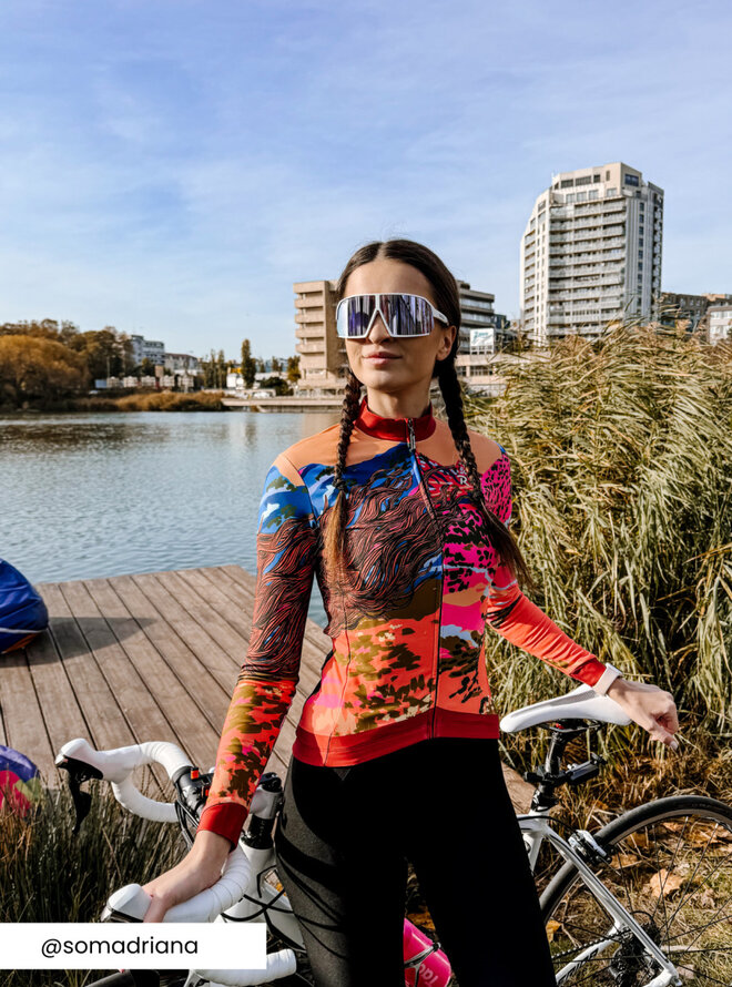 Nová tvorivá spolupráca so známou českou umelkyňou Danou Lédlovou. Na bicykli môžete rozhodne vyzerať dobre! Dana v spolupráci s Rivanelle vytvorila farebnú a atraktívnu dámsku kolekciu s výberom 4 typov dresov, v ktorých sa každá žena bude cítiť jedinečne a hravo. Hlavným mottom mojich návrhov je "Jazdi ako dievča". Vnímam to tak, že ženy sa nesnažia vyrovnať mužom, čo sa týka výkonu alebo štýlu jazdy, ale skôr si dokážu viac vychutnať čaro okamihu. Ja sama milujem čistú hlavu a pocit slobody, ktorý zažívam počas jazdy. Prajem vám, aby vaše jazdy boli čo najslobodnejšie!Predstavujeme novú kolekciu dresov vhodných do chladnejšieho počasia, ako je jar alebo jeseň. Dres je vyrobený z funkčnej mäkkej tkaniny, ktorá vás počas jazdy udrží v teple a pohodlí. Priliehavý materiál zároveň odvádza pot a vďaka silikónovému okraju zostane na svojom mieste aj počas jazdy. Vďaka zúženému strihu a vystuženým zadným vreckám perfektne sedí a unesie všetky vaše jazdecké potreby.