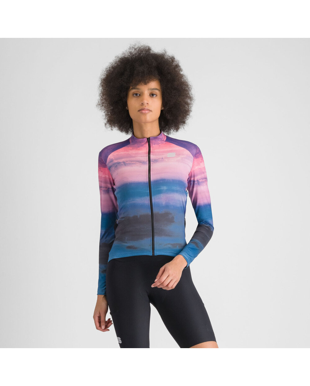 Cyklistický dres s dlhým rukávom zimný - FLOW SUPERGIARA THERMAL W - modrá/ružová
