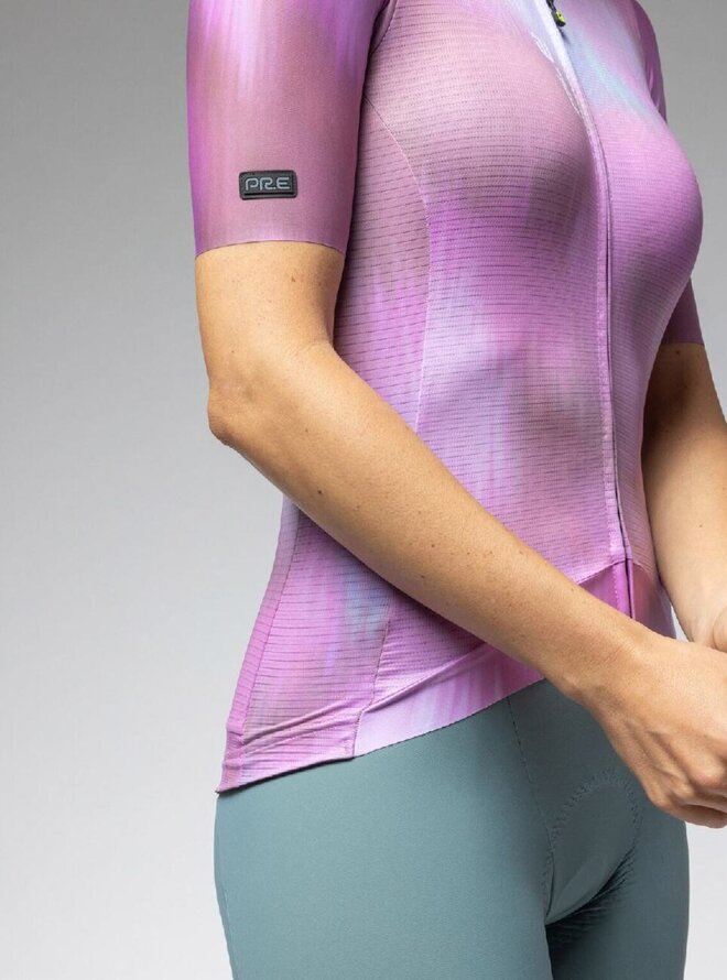 Každá časť dresu PR-E Argon bola navrhnutá tak, aby vyťažila maximum z každej použitej látky. Je vyrobený z tkaniny Rap Dry Carbon s prepletenými uhlíkovými priadzami, ultraľahkej tkaniny Micro Aero na cirkuláciu vzduchu a sieťoviny Piuma v podpazuší pre priedušnosť, čo vedie k prvotriednemu pohodliu o hmotnosti púhych . Systém S-Stability v spodnej prednej časti dresu zaručuje optimálne padnutie. Všité rukávy s nepodšitým strihom.