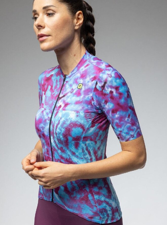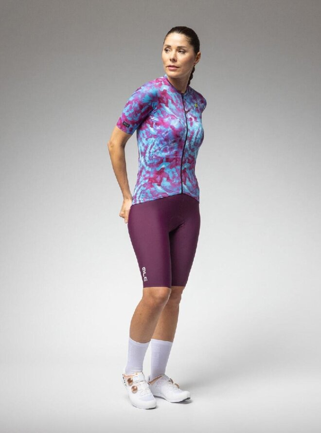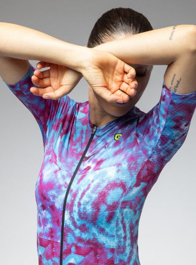 PR-E Clorofilla je ľahký letný dres.Vďaka technológii Alé Body Mapping bol každý panel tohto dresu strategicky umiestnený tak, aby poskytoval skutočné pohodlie. Na podčiarknutie pocitu „druhej kože“ je dres vybavený materiálom Rap Dry Carbon s prepletenými uhlíkovými priadzami a ultraľahkou tkaninou Micro Aero pre neustálu cirkuláciu vzduchu, čo vedie k prvotriednemu pohodliu s hmotnosťou iba 110 gramov. Náš ľahký systém S-Stability System v spodnej prednej časti dresu zaručuje bezchybné padnutie cez kraťasy. Vyvinuli sme ho s inovatívnou konštrukciou zameranou na výkon a umiestnili sme našu prelomovú tkaninu JET STRIPES na rukávy, aby sme minimalizovali odpor vzduchu, s veľmi nízkym objemom, obojsmernou pružnosťou a 3D efektom kanálikov, ktorý zlepšuje aerodynamiku.