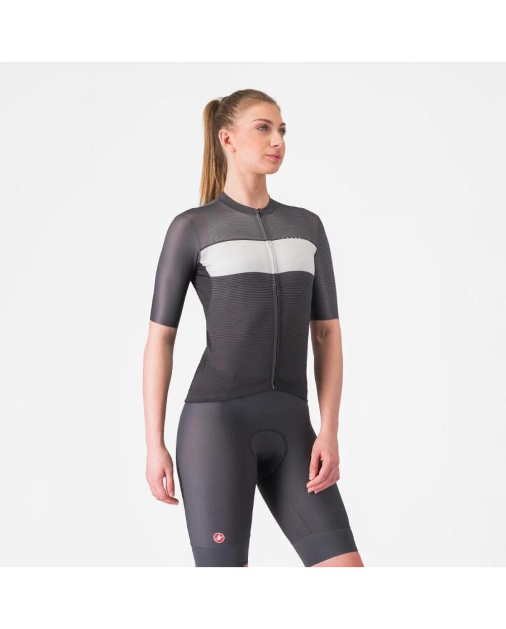 Dres Elegante sa technicky inšpiruje našimi preterárskymi dresmi, ale má voľnejší, menej pretekársky, ale stále priliehavý strih s dizajnom, ktorý vynikne na každej jazde.Elastická, vzdušná mikro sieťovina Strada vpredu, vzadu aj na rukávoch pre skvelý strih a odvod vlhkosti
