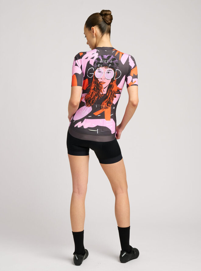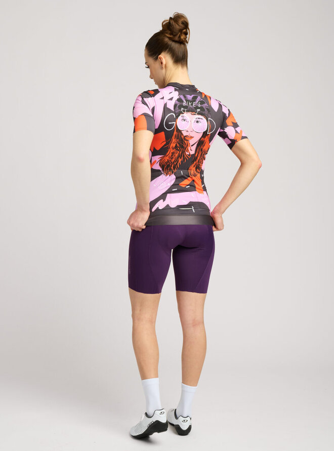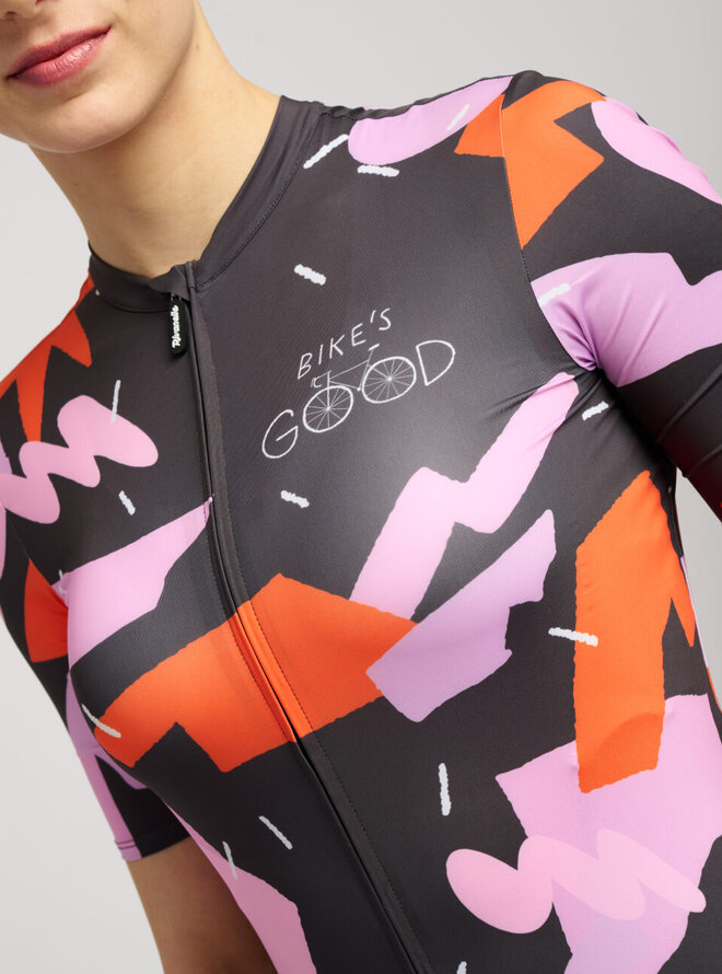 Ľahká, vysokokvalitná tkanina je veľmi príjemná na telo a tiež mimoriadne vzdušná. Vďaka dobrej elasticite sa prispôsobí každej postave a zároveň uhladzuje jej kontúry alebo nedostatky. Dres je plný praktických funkcií a každý detail je navrhnutý s ohľadom na vaše pohodlie. Celoplošný predný zips s ochranný prekrytím krku. Trojité vrecko s bezpečnostým vreckom na zips. Bezšvový lem s protišmykovou potlačou v zadnej časti dresu.