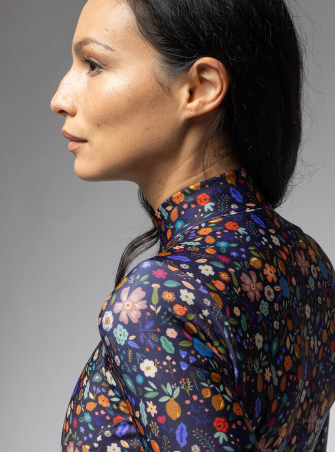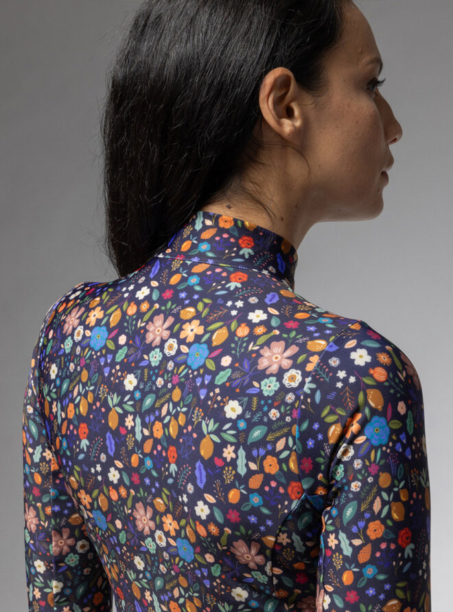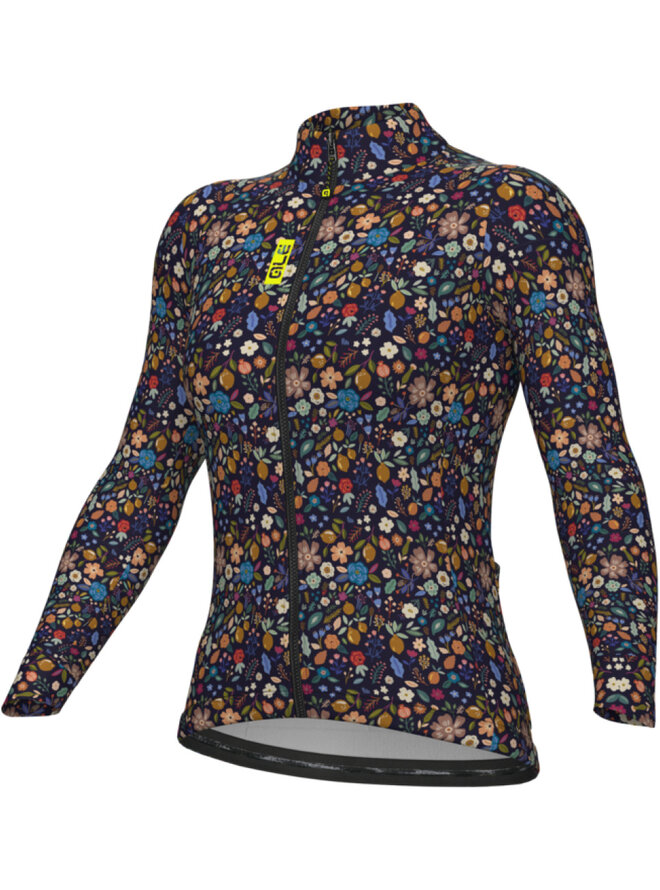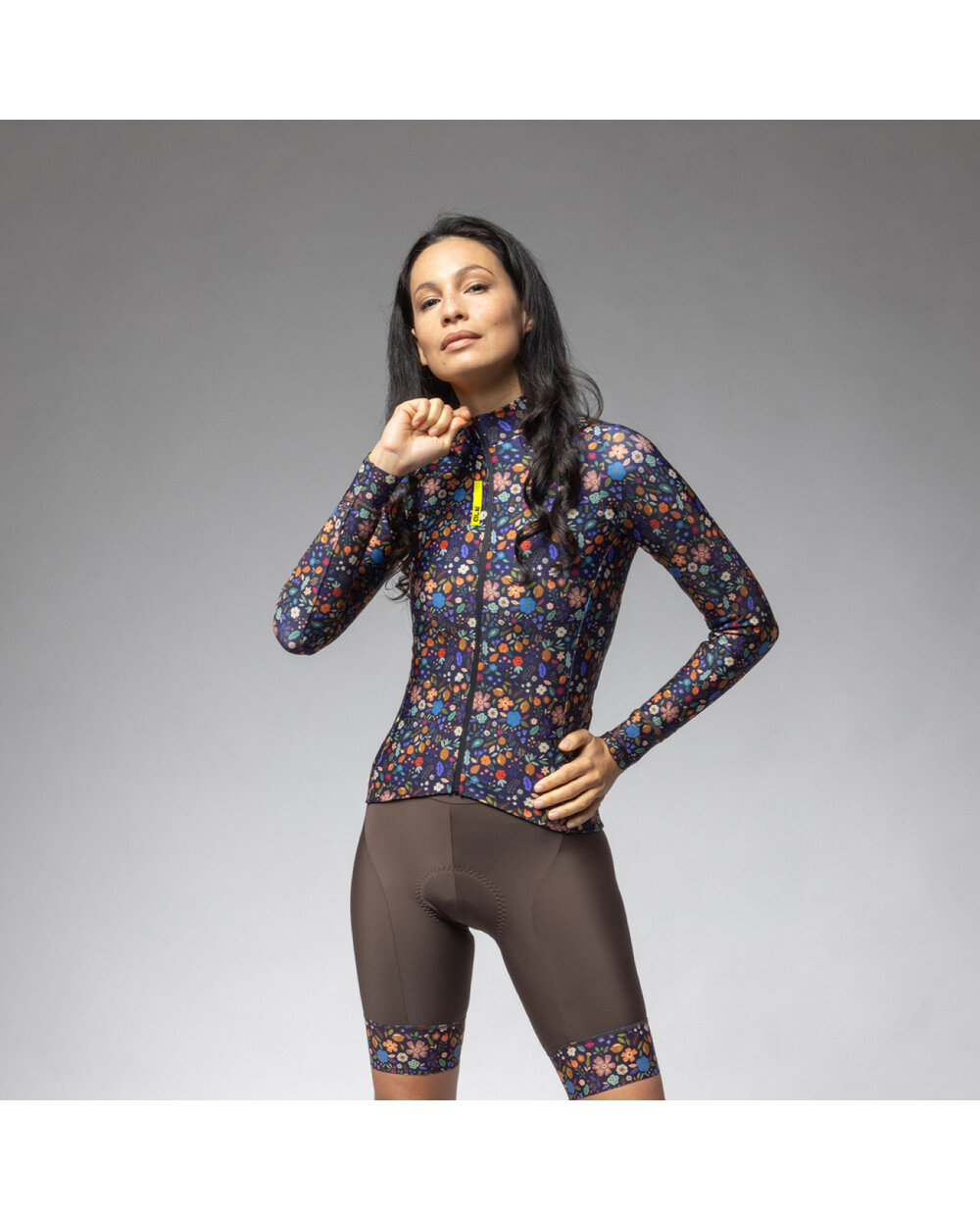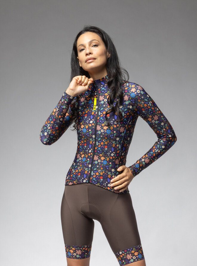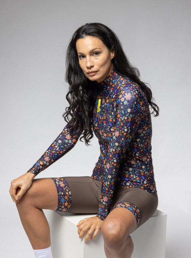 Cyklistický dres s dlhým rukávom zimný - PRAGMA FLOWERY LADY - modrá/viacfarebná