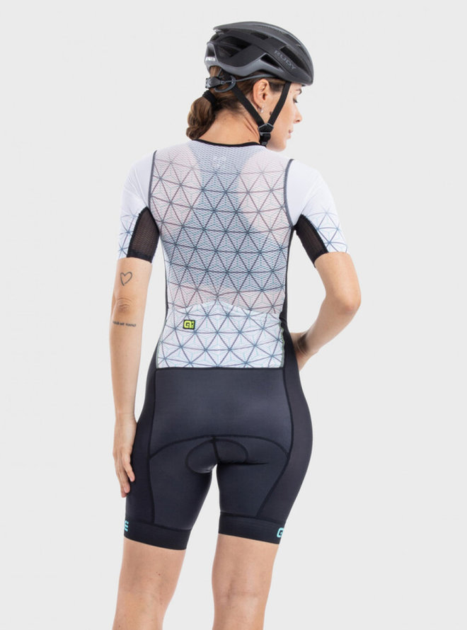 Triatlonový oblek navrhnutý priamo pre triatlonistov Triatlonový oblek s krátkym rukávom ALÉ MAUI LONG TRI je navrhnutý športovcami pre ich špecifické potreby počas dlhých pretekov. Kombinéza poskytuje naozaj skvelé vetranie vďaka možnosti úplného otvorenia predného dielu, ktorý je čiastočne ušitý ako samostatný diel. Zadná časť je potom vyrobená zo sieťoviny Mesh Dragon, ktorá je veľmi priedušná. Do zadných vreciek si potom môžete uložiť energetické tyčinky na cyklistickú a bežeckú časť pretekov.- Vhodné pre teploty od 10° do 30 °C.