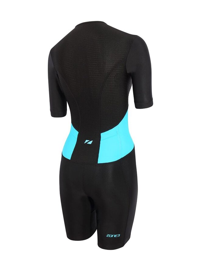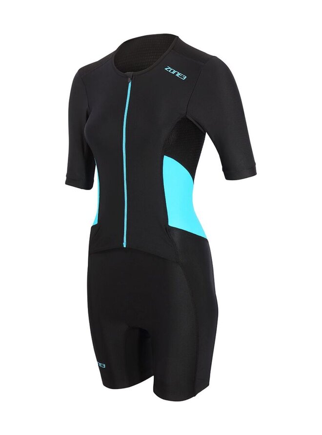Women's Activate Short Sleeve Full Zip Trisuit je dámska triatlonová kombinéza navrhnutá pre maximálne pohodlie a spoľahlivý výkon počas tréningov aj pretekov. Model z obľúbenej rady Activate je ideálnou voľbou pre začiatočníčky aj mierne pokročilé triatlonistky, ktoré hľadajú kvalitný trisuit v dostupnej cenovej kategórii. Kombinéza má krátke rukávy, ktoré zlepšujú aerodynamiku a zároveň poskytujú lepšiu ochranu pred slnkom. Celopredný zips umožňuje jednoduché obliekanie a efektívne odvetranie počas cyklistickej a bežeckej časti. Použitý elastický a priedušný materiál je rýchloschnúci, príjemný na telo a zabezpečuje optimálnu reguláciu teploty aj počas dlhšieho výkonu. Pohodlie zvyšuje triatlonová vložka, ktorá je navrhnutá tak, aby neprekážala pri behu, no zároveň poskytla dostatočný komfort na bicykli. Silikónové zakončenie nohavíc zabraňuje ich vyhŕňaniu a udržiava kombinézu na mieste počas celého preteku. Na zadnej strane sa nachádza praktické vrecko na gél alebo drobné nevyhnutnosti.Detaily