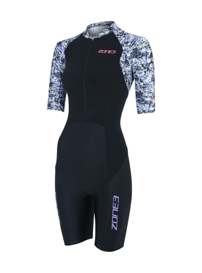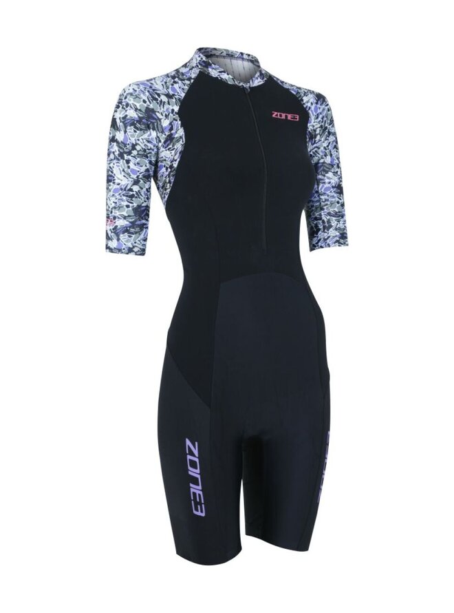 Zone3 Lava Short Sleeve Trisuit je prémiový dámsky triatlonový oblek určený pre náročné preteky aj dlhšie tréningy. Tento model pochádza z oceňovanej kolekcie Lava, ktorá je výsledkom dlhodobého vývoja a testovania v aerodynamickom tuneli aj medzi profesionálnymi atlétmi. Lava trisuit kombinuje pokročilé aerodynamické panely, vodoodpudivé úpravy a technické materiály, ktoré spoločne zlepšujú výkon vo všetkých troch disciplínach – plávaní, bicykli a behu. Použité materiály sú ľahké, priedušné a rýchloschnúce, pričom hlavné panely pre maximálny komfort a výkon využívajú Aeroforce Soft‑Touch premium tkaninu, ktorá je mäkká na dotyk, výborne odvádza pot a zároveň má nano vrstvu odpudzujúcu vodu pre zníženie odporu pri vstupe do vody aj mimo nej. Textúrovaný AERO‑STRIPE materiál na rukávoch a hornej časti chrbta pomáha zlepšiť aerodynamiku pri vyšších rýchlostiach, čo je dôležité hlavne počas cyklistickej časti závodu. Ergonomický strih a panelový dizajn prispôsobený dámskej anatómii zabezpečuje komfortné priľnutie bez obmedzenia pohybu. Kombinéza disponuje integrovanými leg grippermi s prémiovými „zlatými“ vláknami pre stabilné držanie nohavíc bez posunu, zatiaľ čo ploché švy a tepelná väzba na rukávoch minimalizujú odieranie pokožky a zvyšujú pohodlie počas celého závodu. Model Lava má veľkú zadnú kapsu na výživové gély či drobné potreby, plný predný zips pre ľahké obliekanie a reguláciu ventilácie a komfortnú Cytech Tri Comp vložku, ktorá je navrhnutá pre dlhšie triatlonové trate bez kompromisov na pohodlí.Detaily