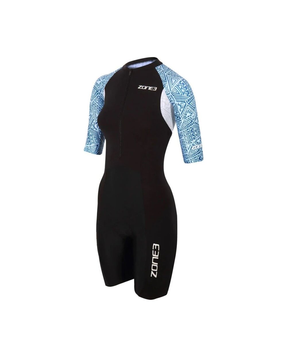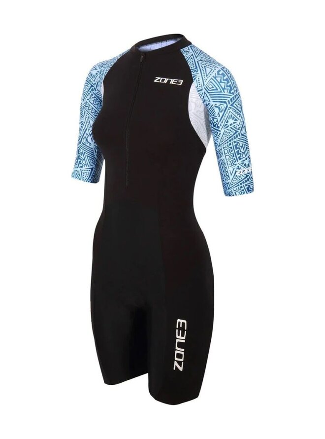 Dámsky Zone3 Lava Short Sleeve Trisuit je prémiový triatlonový oblek navrhnutý pre náročné tréningy a závodné dni. Tento model z kolekcie Lava kombinuje pokročilé technické materiály, aerodynamický strih a štýlový dizajn, aby poskytol športovkyniam maximálny výkon vo všetkých troch disciplínach triatlonu – plávaní, cyklistike aj behu. Trisuit využíva Aeroforce Soft‑Touch materiál na prednej časti trupu a chrbte, ktorý je ľahký, priedušný a rýchloschnúci, zároveň odpudzuje vodu a znižuje odpor pri prechode z vody na suchú trať. Rukávy a horná časť chrbta sú vyrobené z textúrovaného Aero‑Stripe materiálu, ktorý zlepšuje aerodynamiku a stabilitu obleku pri vyšších rýchlostiach. Bočné panely a nohavice používajú Sensory materiál, ktorý poskytuje miernu kompresiu, podporu svalov a komfort počas celého výkonu. Ergonomický strih a panelový dizajn prispôsobený dámskej anatómii zabezpečuje komfortné priľnutie bez obmedzenia pohybu. Oblek má integrované leg grippery pre stabilné držanie nohavíc, ploché švy, ktoré minimalizujú odieranie, a zadnú kapsu na energetické gély či drobné potreby. Predný zips umožňuje jednoduché obliekanie a efektívnu ventiláciu, a Cytech Tri Comp vložka zaručuje pohodlie pri cyklistickej časti aj behu.Detaily