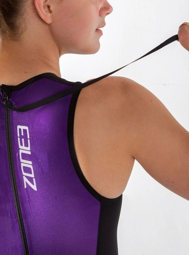 Zone3 Streamline Sleeveless Swimskin je dámsky bezrukávový swimskin navrhnutý pre triatlonistov a plavcov, ktorí chcú zlepšiť svoju hydrodynamiku a rýchlosť pri plávaní bez neoprénu. Je to ľahká a kompresívna plavecká koža, ktorá sa nosí cez závodný kit alebo trikoty a pomáha znížiť odpor vody, čím podporuje efektívnejšie a rýchlejšie plávanie. Oblek je vyrobený z ľahkej talianskej tkaniny s vysokou kompresiou a obsahuje hydrofóbne (vodoodpudivé) vrstvy, ktoré minimalizujú nasiakavanie vody a udržujú tvar aj počas výkonu. Švy sú plne zvarenésené a materiál je pokrytý nano‑povrchovou úpravou, vďaka čomu je komfort nosenia vysoký a odpor vody nízky. Zadný zips uľahčuje obliekanie a vyzliekanie, zatiaľ čo jasnejší zadný panel zlepšuje viditeľnosť vo vode. Tento swimskin je ideálnym doplnkom pre triatlonové súťaže, open‑water tréningy alebo akúkoľvek situáciu, kde chceš maximalizovať rýchlosť, znížiť odpor a získať lepšiu pozíciu v vode bez použitia neoprénu.Detaily