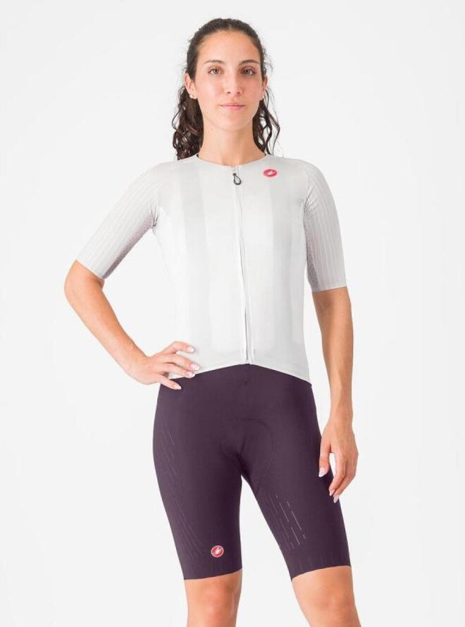 Krátke beztrakové nohavice Free Aero Race S W boli vytvorené, aby uspokojilii požiadavky výkonnostných cyklistov, bez ohľadu na to, či ide o tréning na obľubenom okruhu alebo o najnáročnejšie svetové preteky. Keď nasadnete na bicykel, prvú vec, ktorú chcete od svojich krátkych nohavíc je pohodlie. Materiál Forza2 Stretch je elastický a kopíruje telo bez sťahovania, vďaka čomu sa hýbe s každým šliapnutím. Silikónové aplikácie na ukončení nohavíc udržia nohavicu na mieste. Samozrejme, použili sme našu vložku Progetto X2 Air Seamless Donna aby ste mali pohodlie aj na najdlhších tréningoch. V modernom svete výkonnostnej cyklistiky sa aerodynamika rýchlo stala jednou z kľúčových vlastností. Nespočetné hodiny vo veternom tuneli nám pomohli znížiť CdA koeficient o 3 %, čo z nich robí doteraz najrýchlejšiu verziu krátkych nohavíc Free Aero Race . Znamená to, že každý odšlapaný watt môžete použiť, aby ste šli rýchlejšie