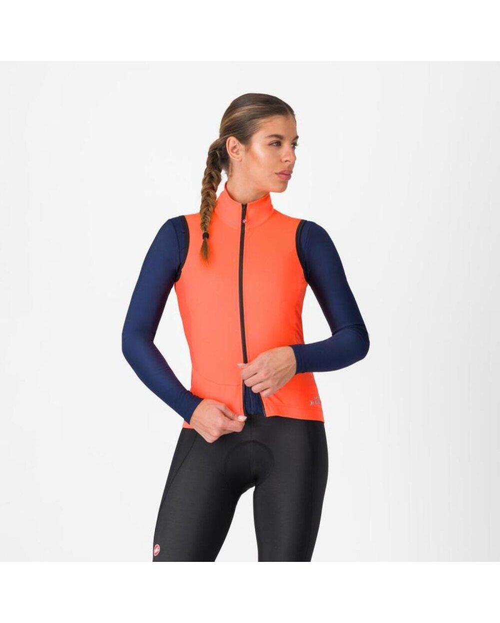 Táto vesta je stvorená pre prípady, keď potrebujete byť v teple počas celej jazdy. Je to naša najteplejšia vesta, ale vďaka výnimočnej priedušnosti pokrýva široký teplotný rozsah.Takto všestrannou ju robí technológia materiálu Castelli Ristretto. Materiál je navrhnutý s priepustnosťou vzduchu, takže je vetroodolný, ale prepúšťa veľmi malé množstvo vzduchu, vďaka čomu odvádza viac potu a udržiava vás v suchu. Predná strana je vyrobená zo stredne ťažkej verzie materiálu Ristretto, zatiaľ čo zadná strana je z elastickej tkaniny pre ešte väčšiu priedušnosť. Zostanete v suchu, čo znamená, že sa dokážete môžete zahriať aj s tenšou vestou. Vetranie si môžete nastaviť pomocou dvojitého zipsu YKK® Vislon®. Tri priestranné zadné vrecká pojmú vašu výbavu. Golier je dostatočne vysoký, takže nákrčnák môžete nechať doma.