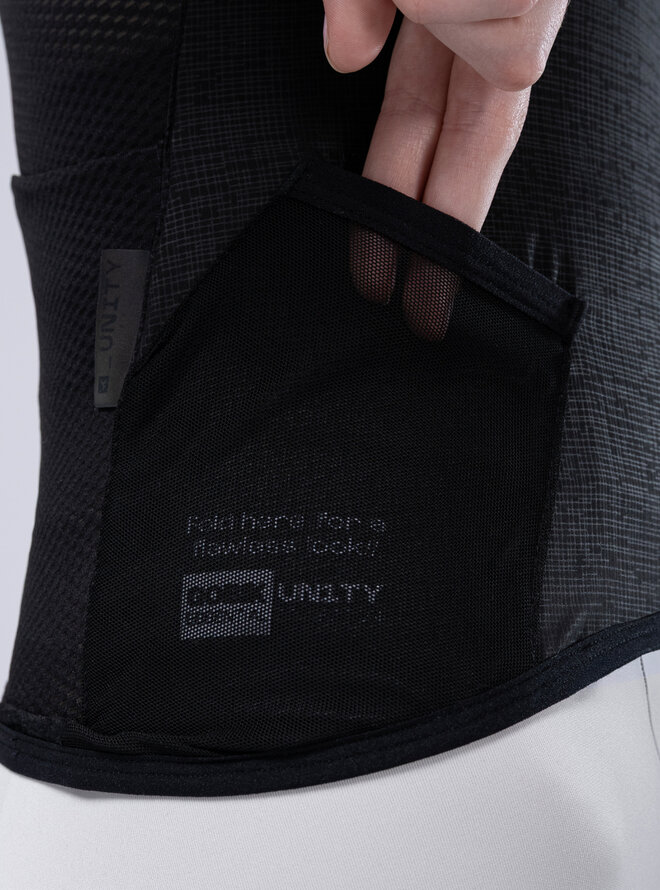 Nový optimalizovaný strih zlepšuje priliehanie, zabezpečujúc dokonalú integráciu na dres bez nepríjemností alebo obmedzení. Zadné otvory boli prepracované tak, aby umožnili rýchly a pohodlný prístup k vreckám dresu aj počas pohybu.