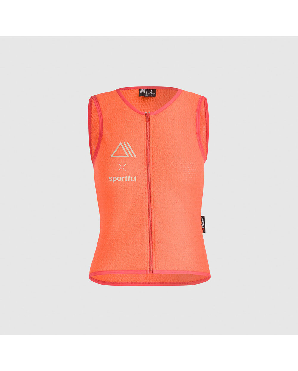Špeciálna dvojdielna konštrukcia kopíruje telo bez tlaku a trenia, takže sa dá vesta nosiť priamo na pokožke, na tenkom spodnom prádle alebo pod vetruodolnou vrstvou. Materiál má nízky objem a rýchlo schne, čo z neho robí spoľahlivý základ pri premenlivom počasí aj v období, keď sa teploty pohybujú okolo nuly. Predný zips od svetoznámeho výrobcu YKK® umožňuje rýchle obliekanie a reguláciu tepla počas jazdy.