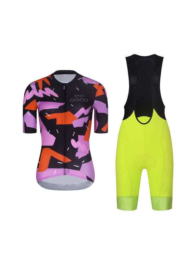 Cyklistický krátky dres a krátke nohavice - BIKE´S GOOD - žltá/čierna/viacfarebná