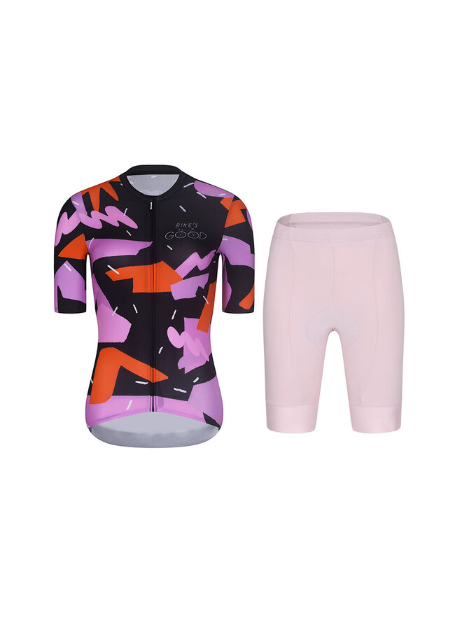 Cyklistický krátky dres a krátke nohavice - BIKE´S GOOD - ružová/viacfarebná/čierna