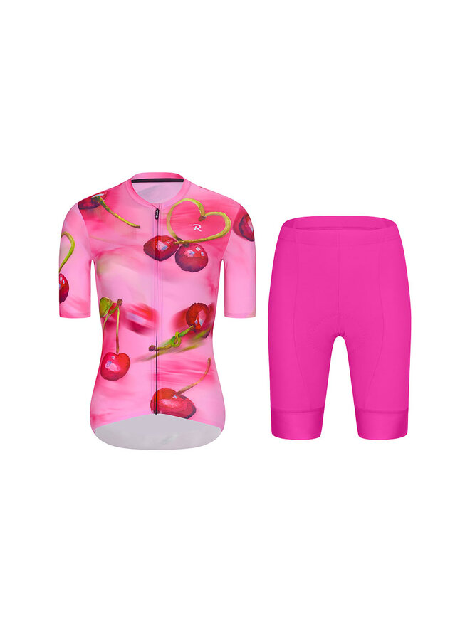 Cyklistický krátky dres a krátke nohavice - CHERIE - cyklamenová/ružová